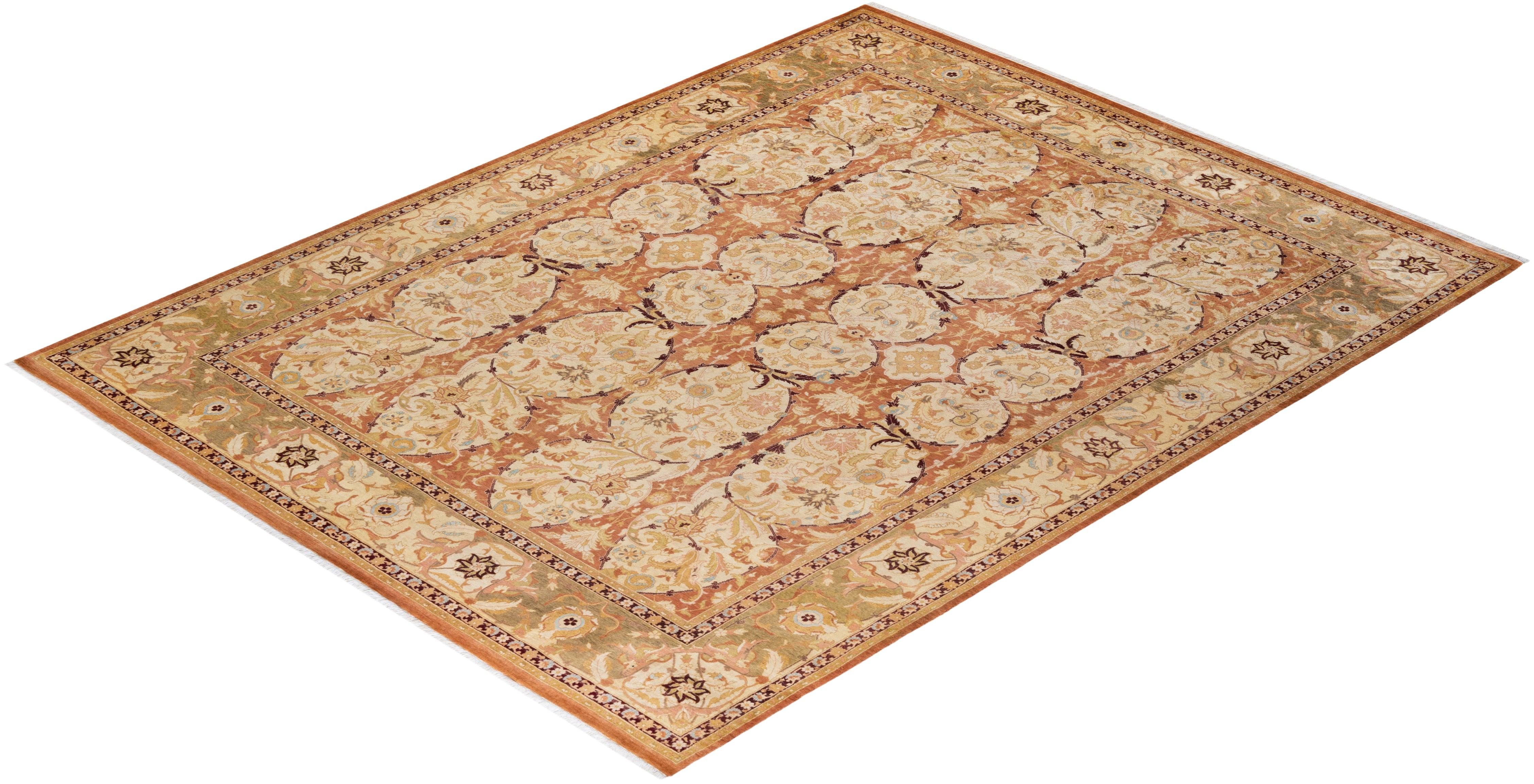 Traditional Hand Knotted Mogul Floral Brown Area Rug 8' 1" x 10' 5"