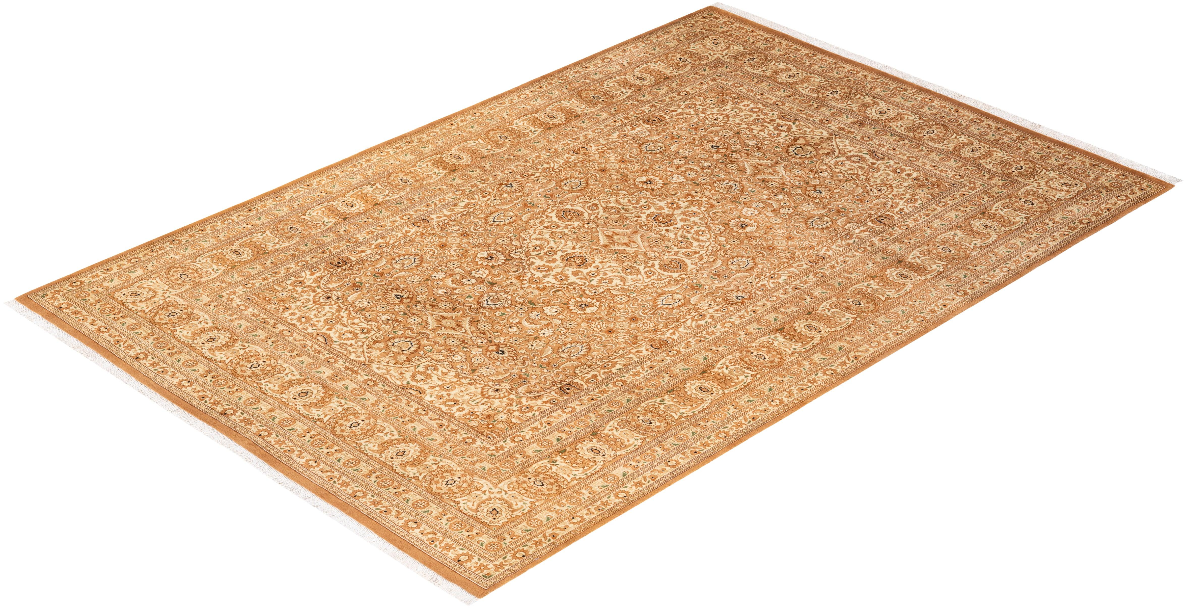 Traditional Hand Knotted Mogul Oriental Yellow Area Rug 6' 1" x 9' 1"