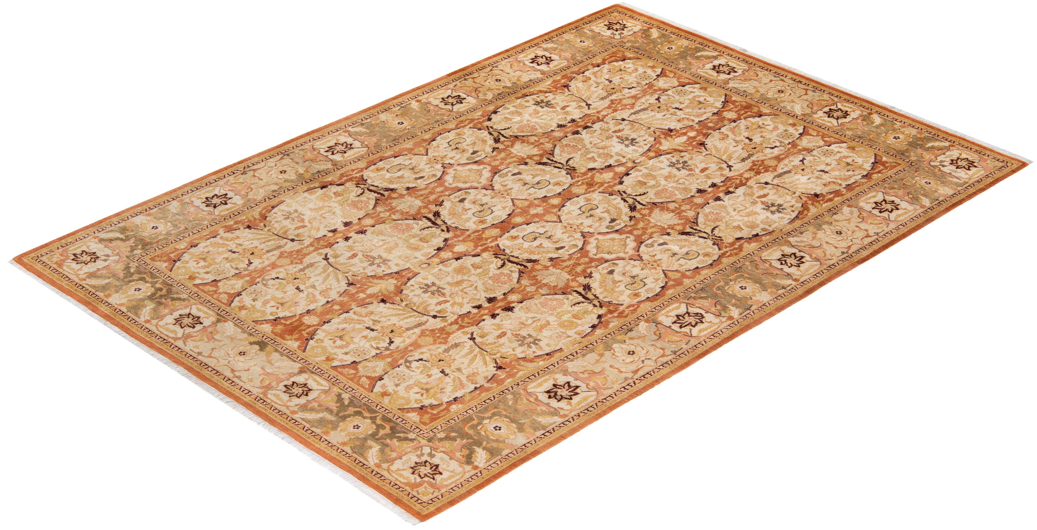 Traditional Hand Knotted Mogul Floral Brown Area Rug 6' 1" x 8' 10"