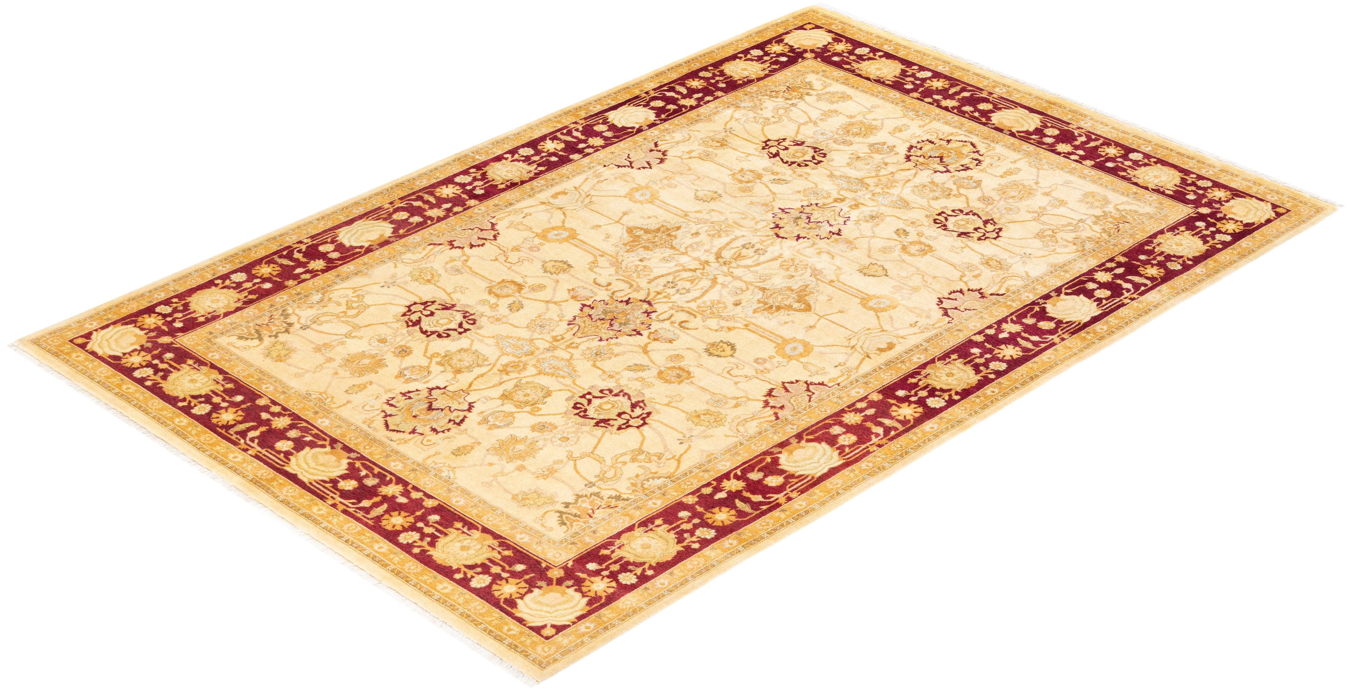 Traditional Hand Knotted Mogul Oriental Ivory Area Rug 6' 2" x 8' 10"