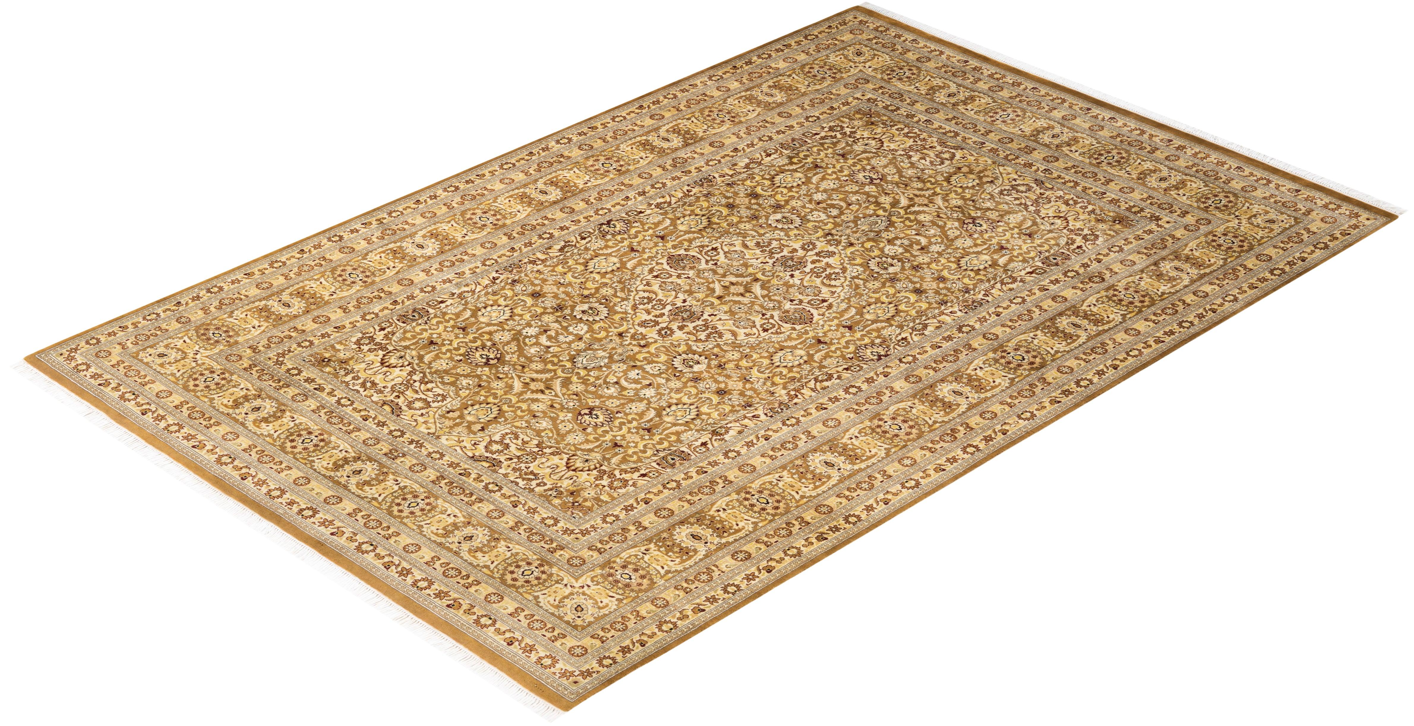 Traditional Hand Knotted Mogul Oriental Yellow Area Rug 6' 0" x 9' 3"