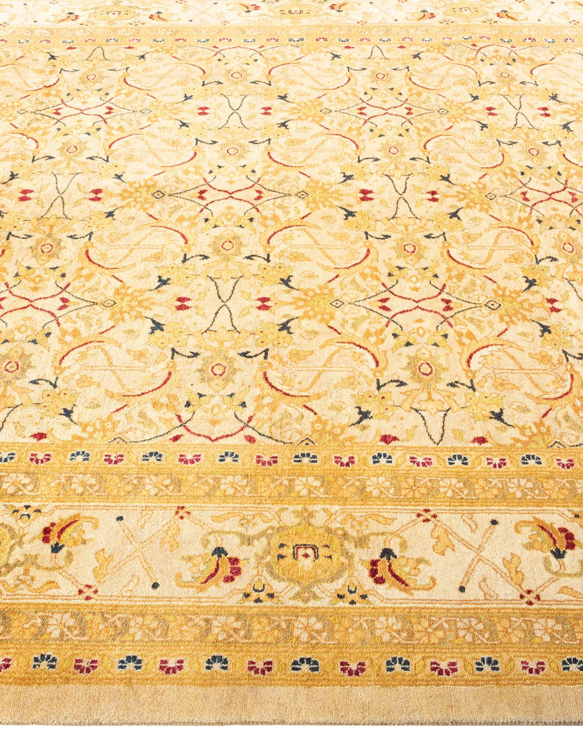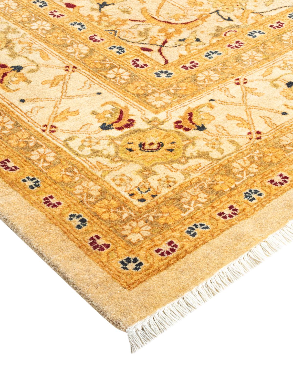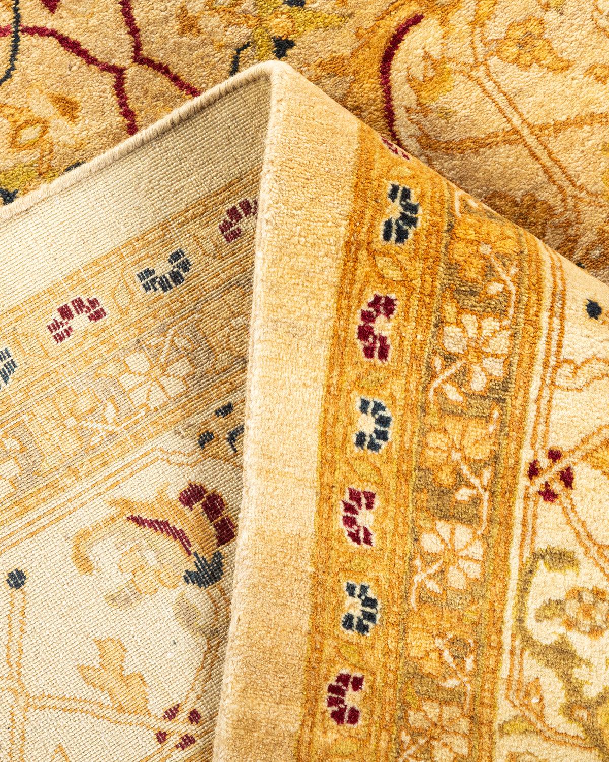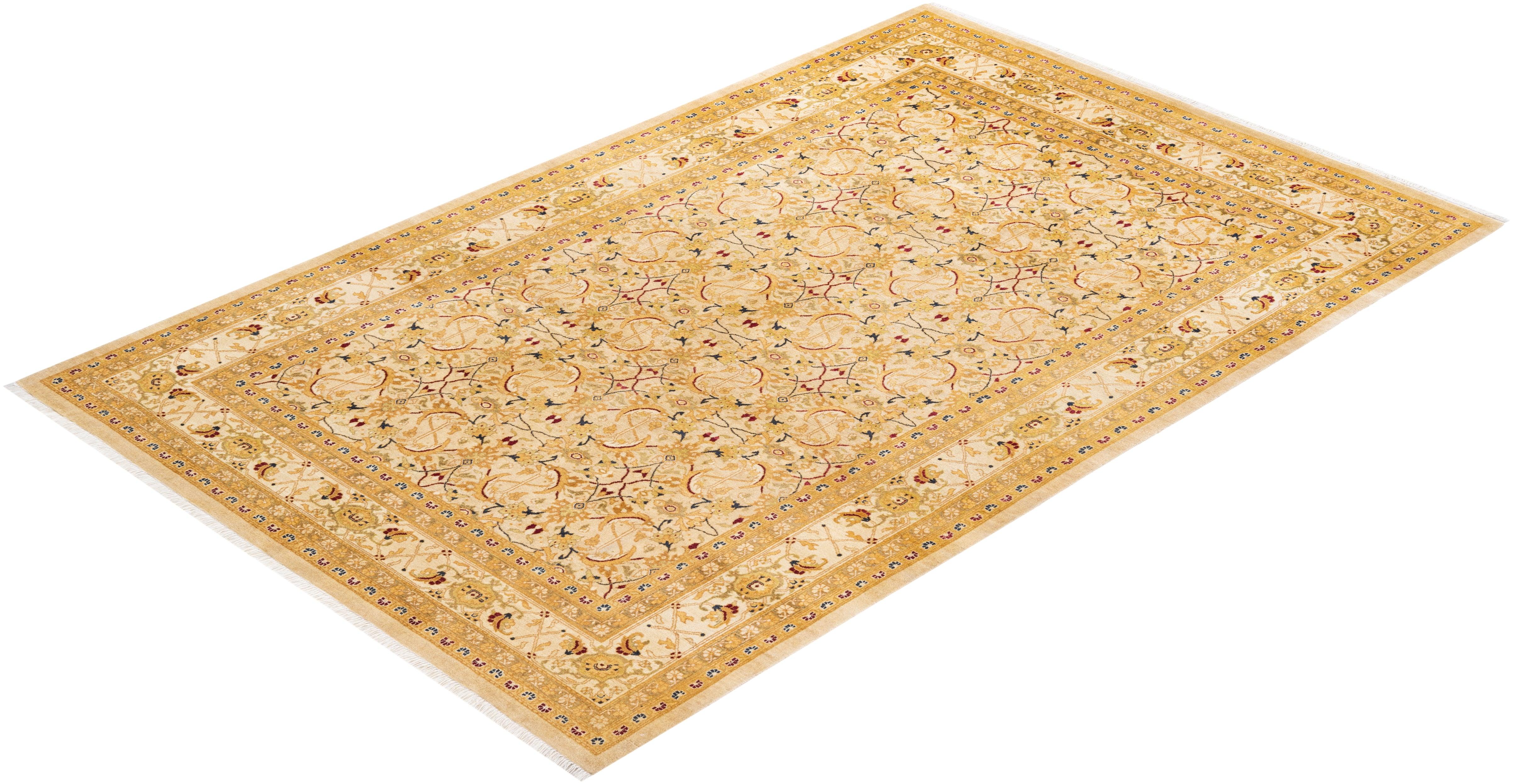 Traditional Hand Knotted Mogul Floral Ivory Area Rug 5' 10" x 9' 0"