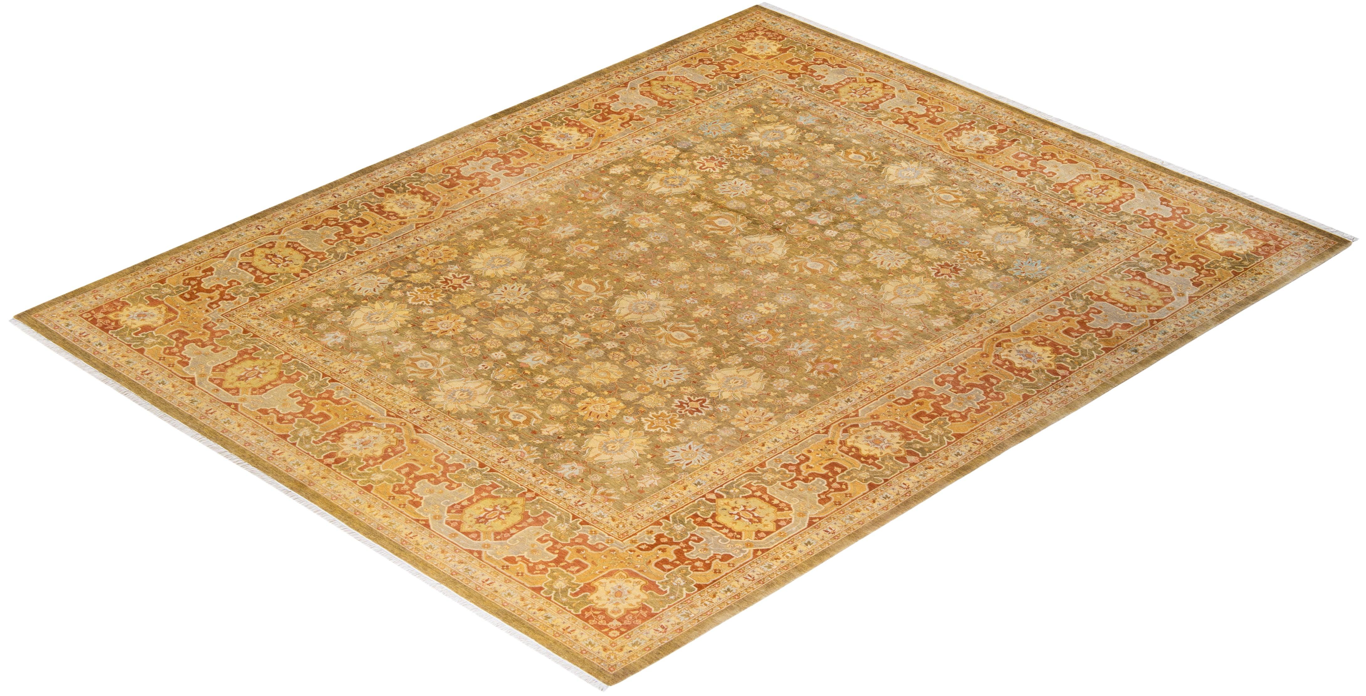 Traditional Hand Knotted Mogul Floral Green Area Rug 8' 4" x 10' 3"