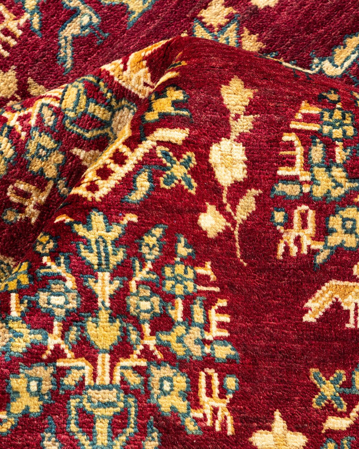 Traditional Hand Knotted Mogul Floral Red Area Rug 8' 1" x 10' 1"