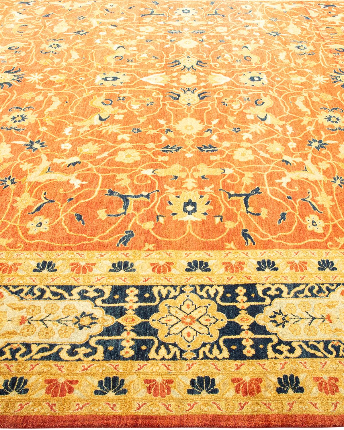 Traditional Hand Knotted Mogul Floral Orange Area Rug 8' 1" x 9' 10"