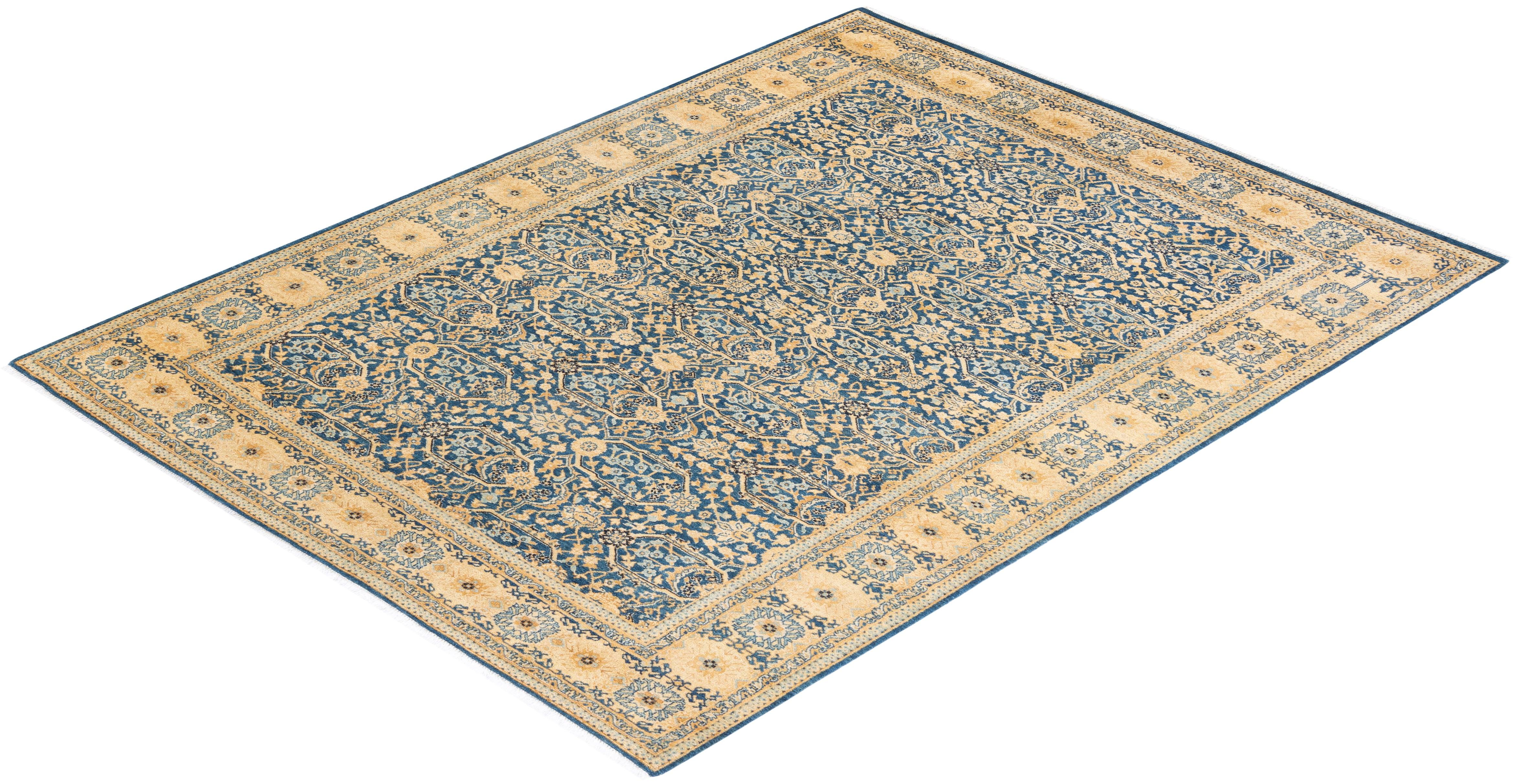Traditional Hand Knotted Mogul Oriental Blue Area Rug 6' 2" x 8' 7"