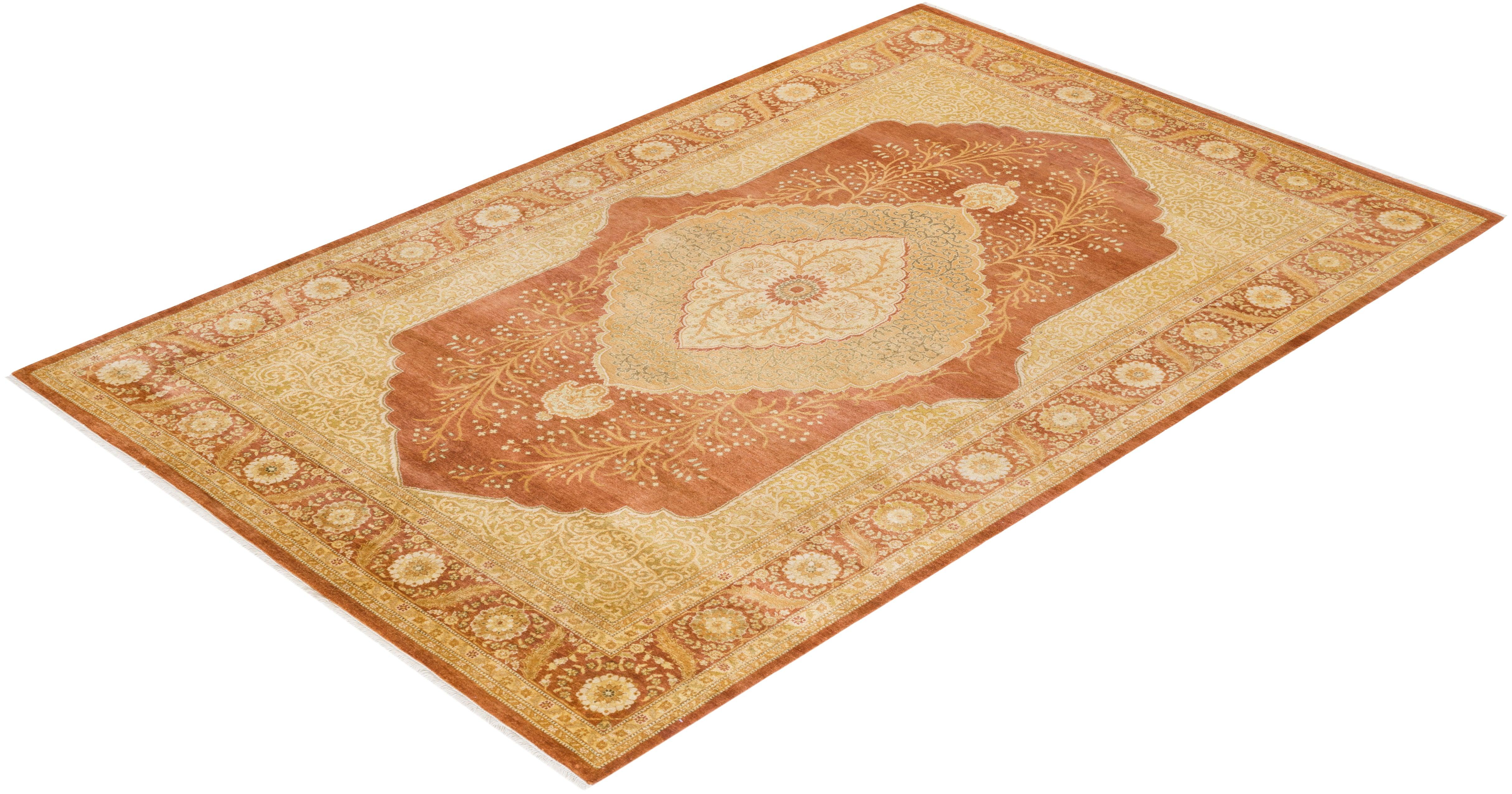 Traditional Hand Knotted Mogul Oriental Brown Area Rug 6' 3" x 9' 6"