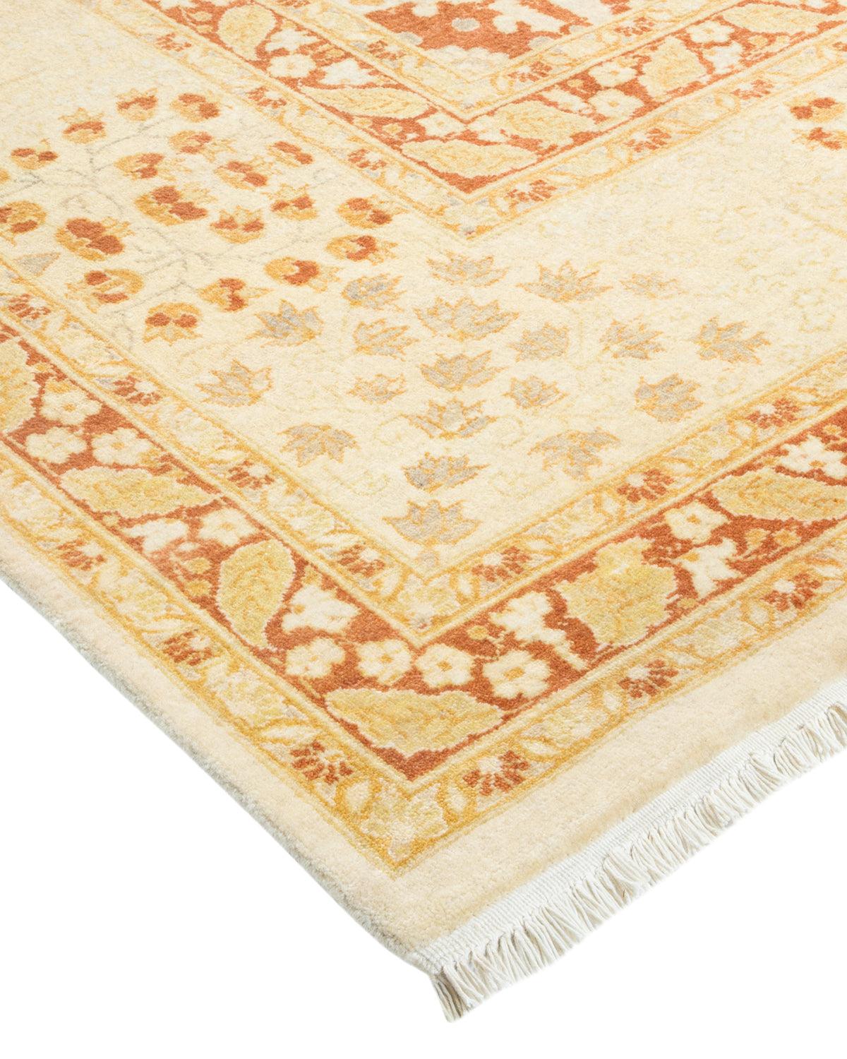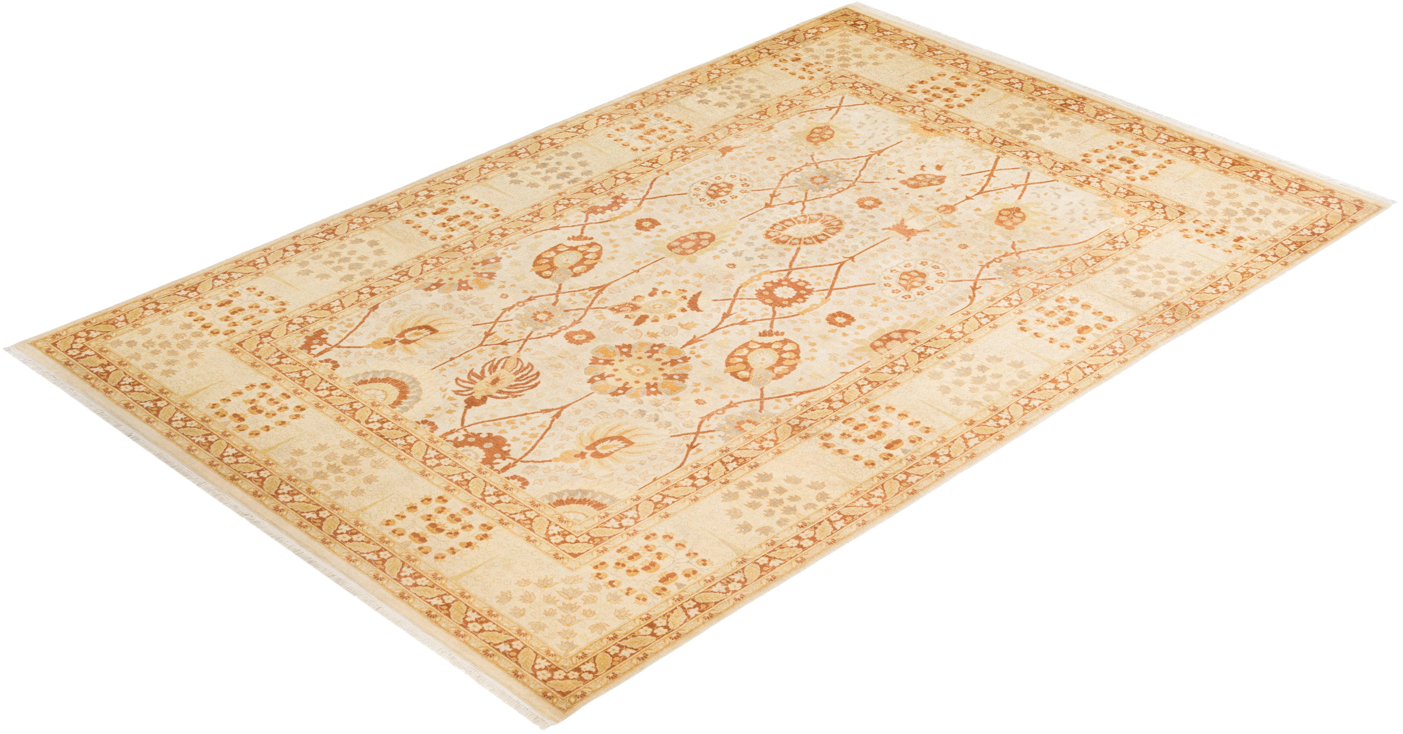 Traditional Hand Knotted Mogul Floral Ivory Area Rug 6' 2" x 9' 4"