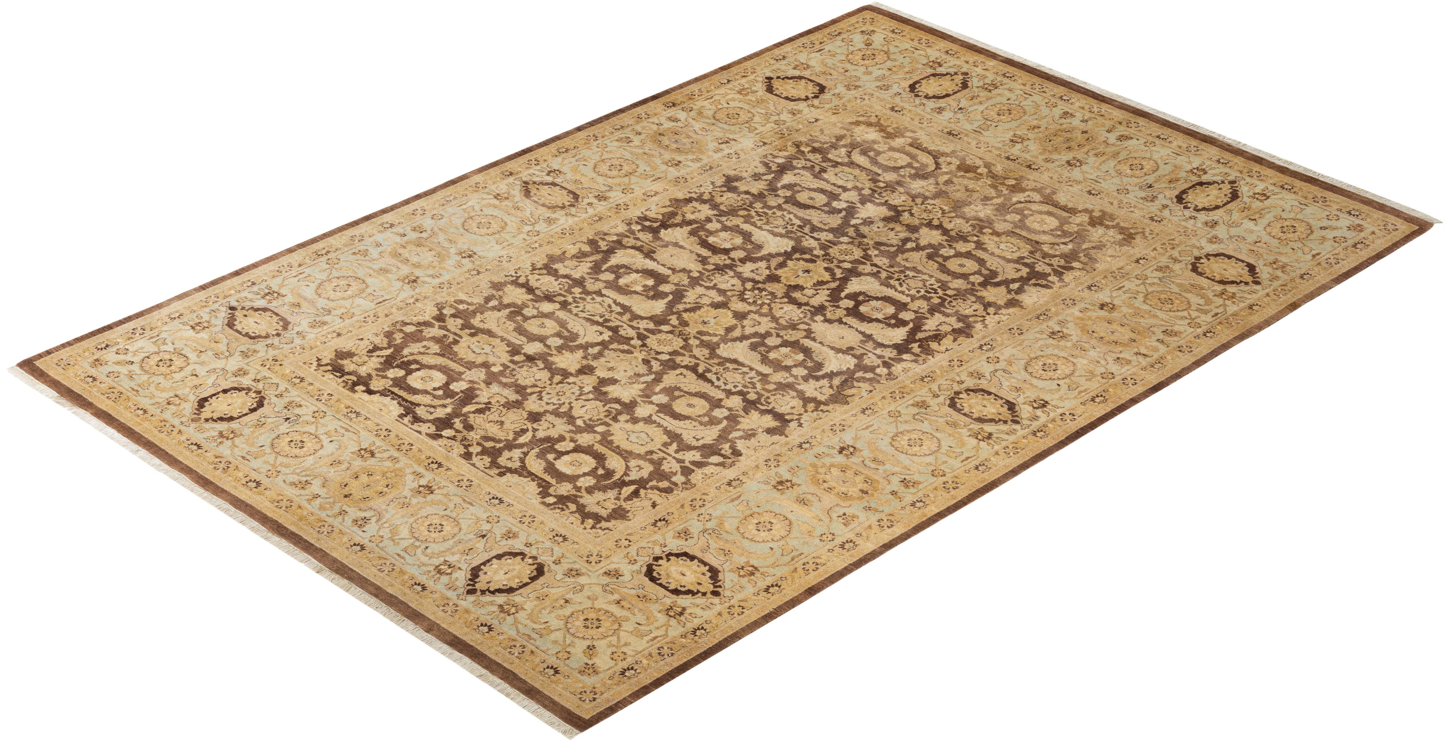 Traditional Hand Knotted Mogul Oriental Brown Area Rug 6' 1" x 9' 1"