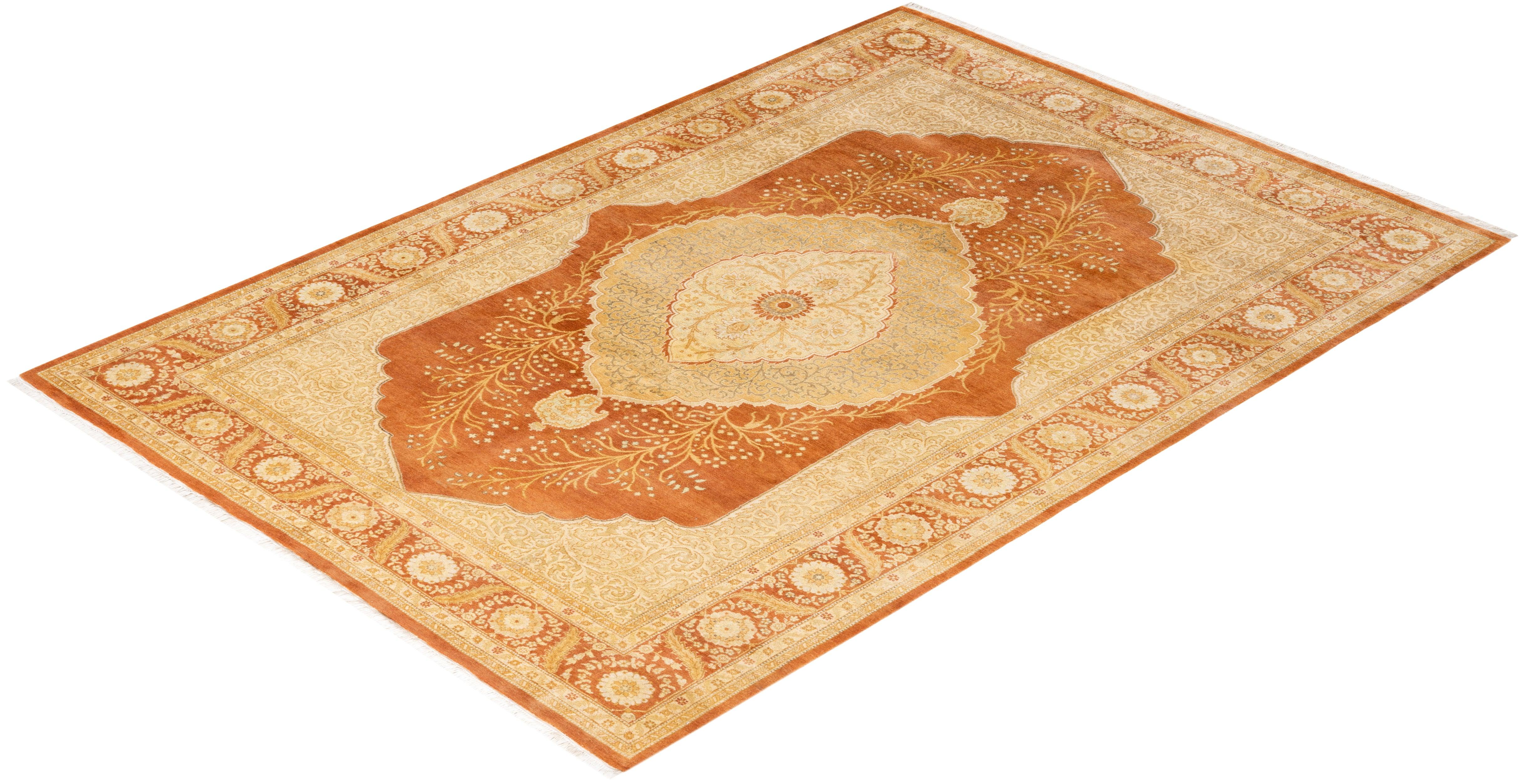 Traditional Hand Knotted Mogul Oriental Brown Area Rug 6' 3" x 9' 2"