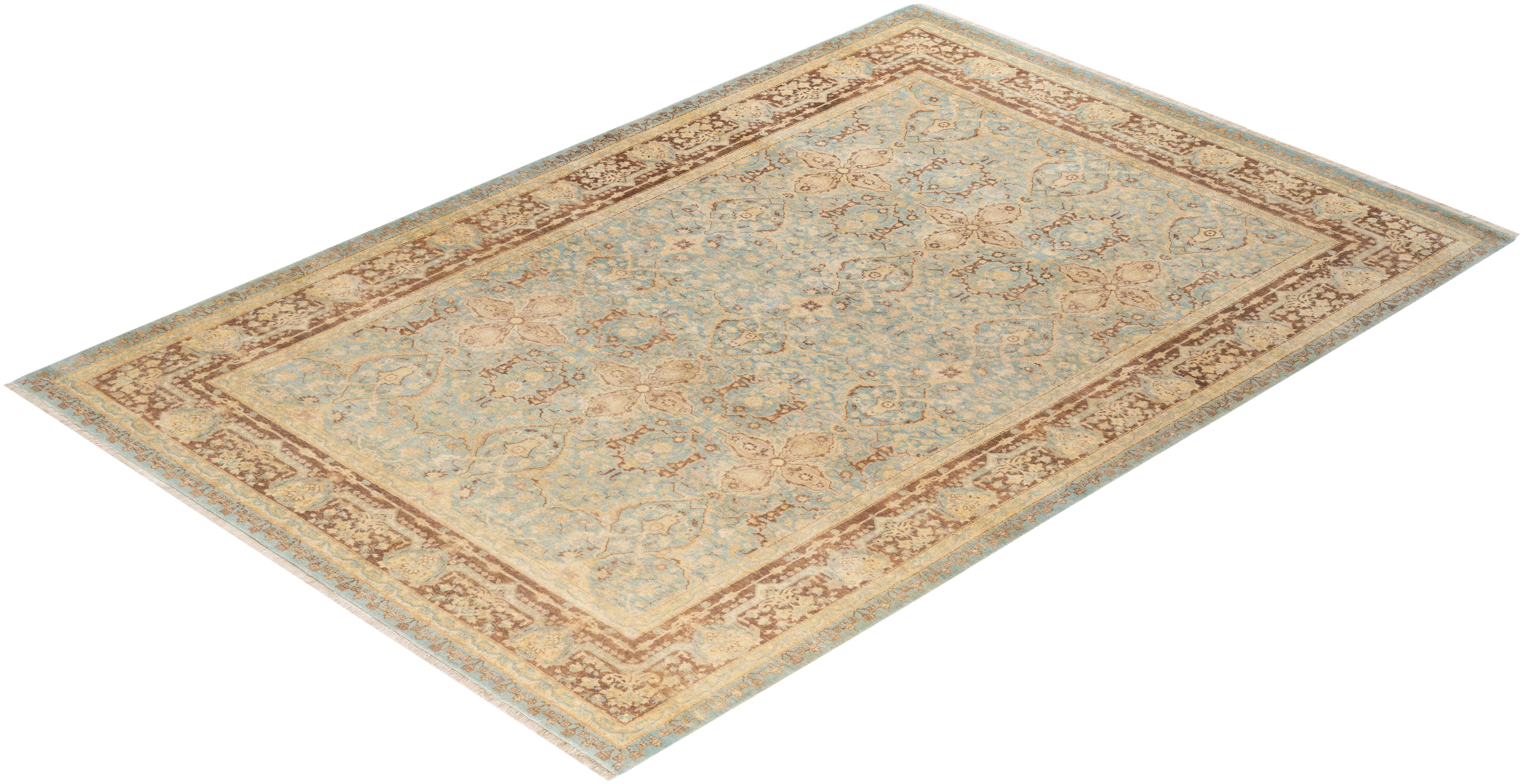 Traditional Hand Knotted Mogul Floral Light Blue Area Rug 6' 1" x 9' 1"