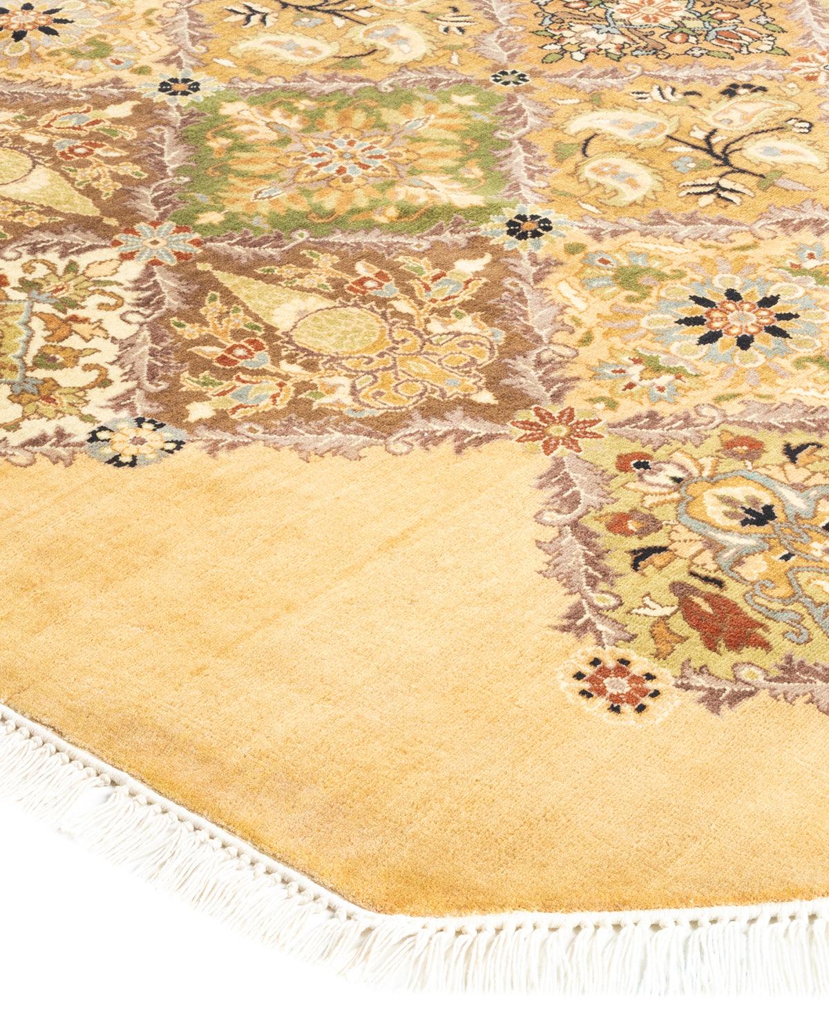 Traditional Hand Knotted Mogul Geometric Yellow Octagon Area rug 7' 1" x 7' 1"