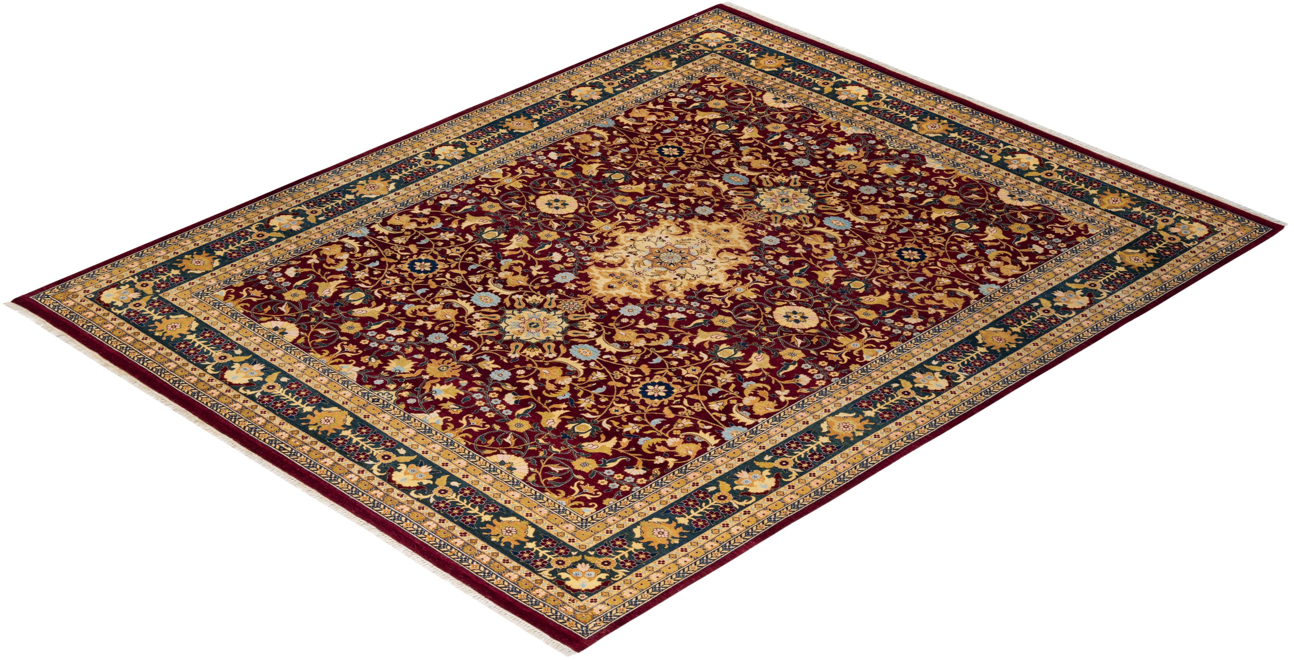 Traditional Hand Knotted Mogul Floral Red Area Rug 8' 2" x 10' 1"