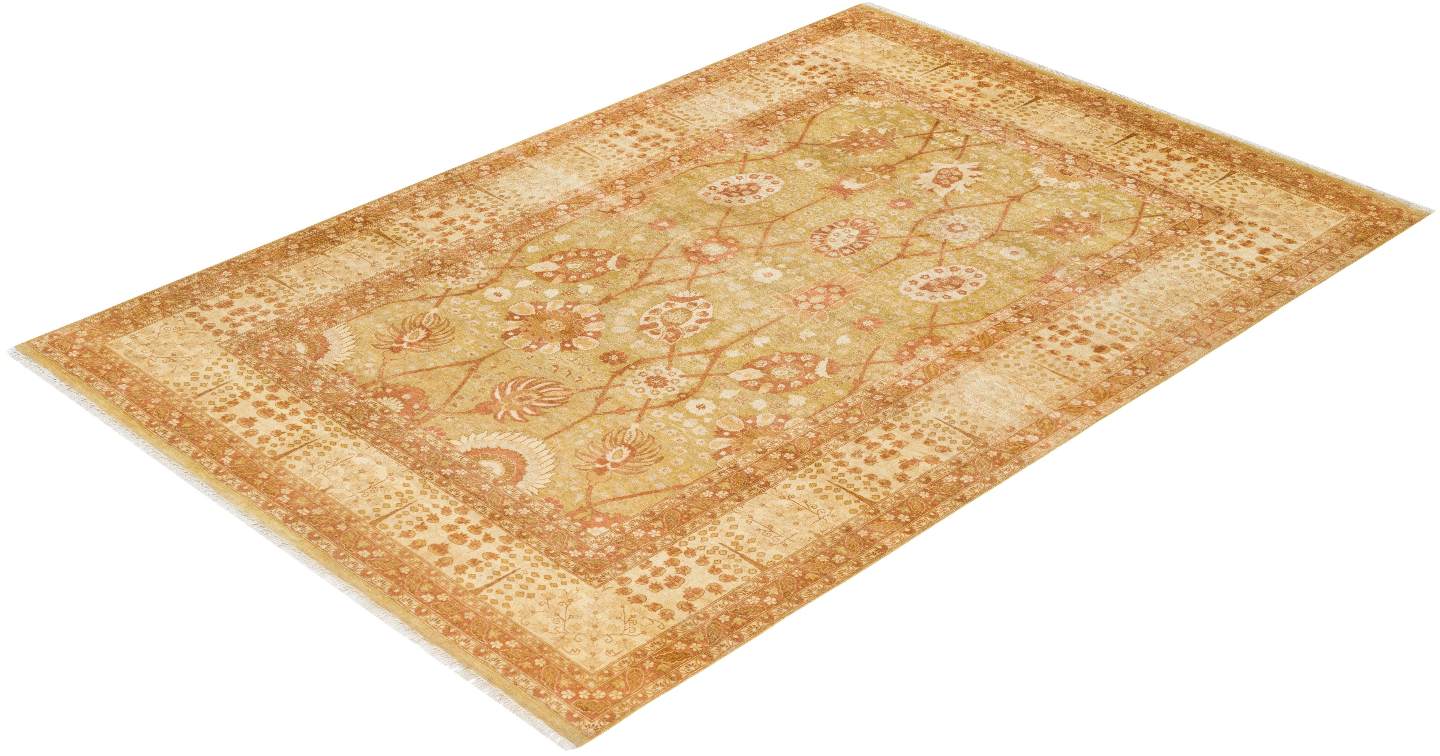 Traditional Hand Knotted Mogul Floral Green Area Rug 6' 2" x 9' 1"