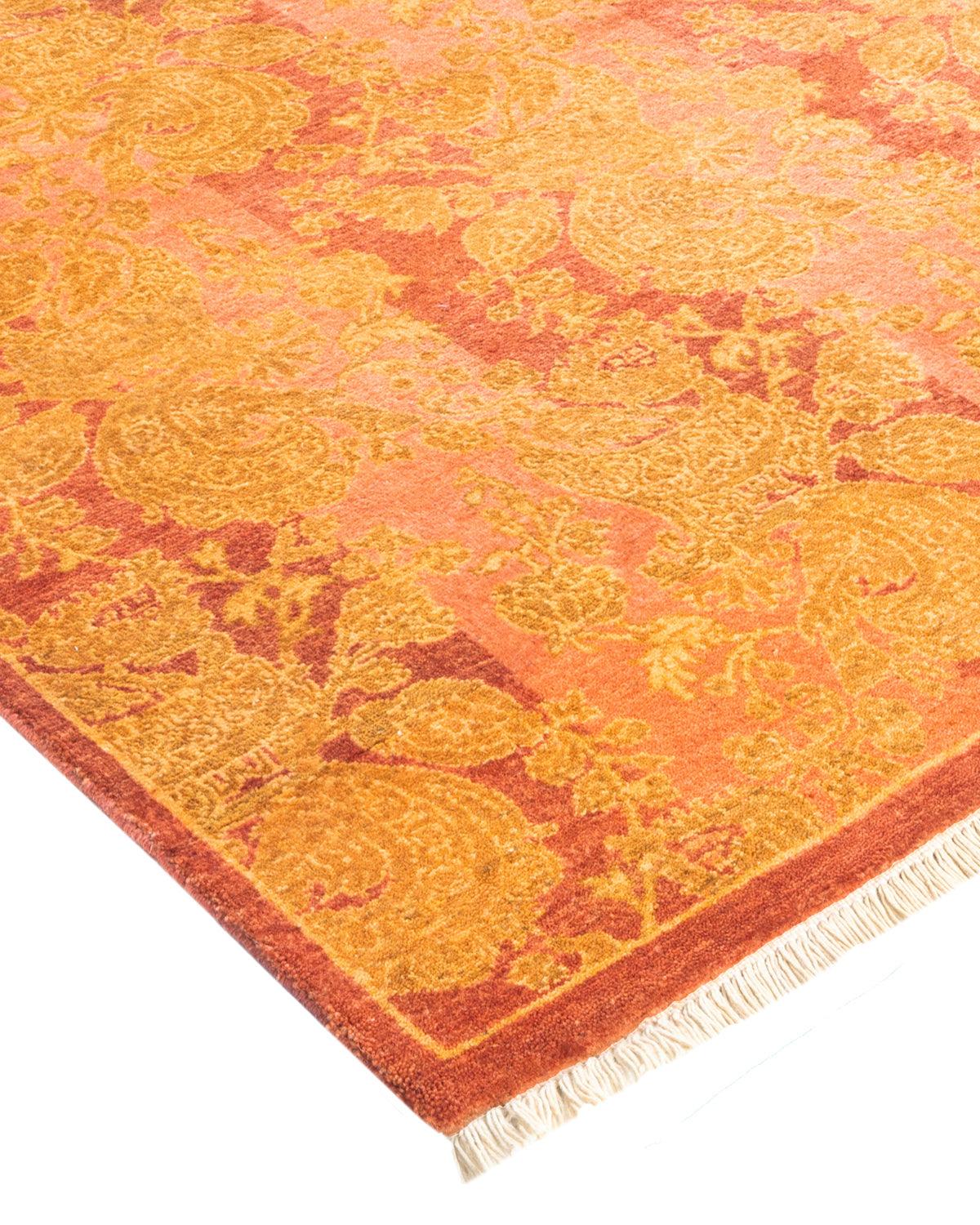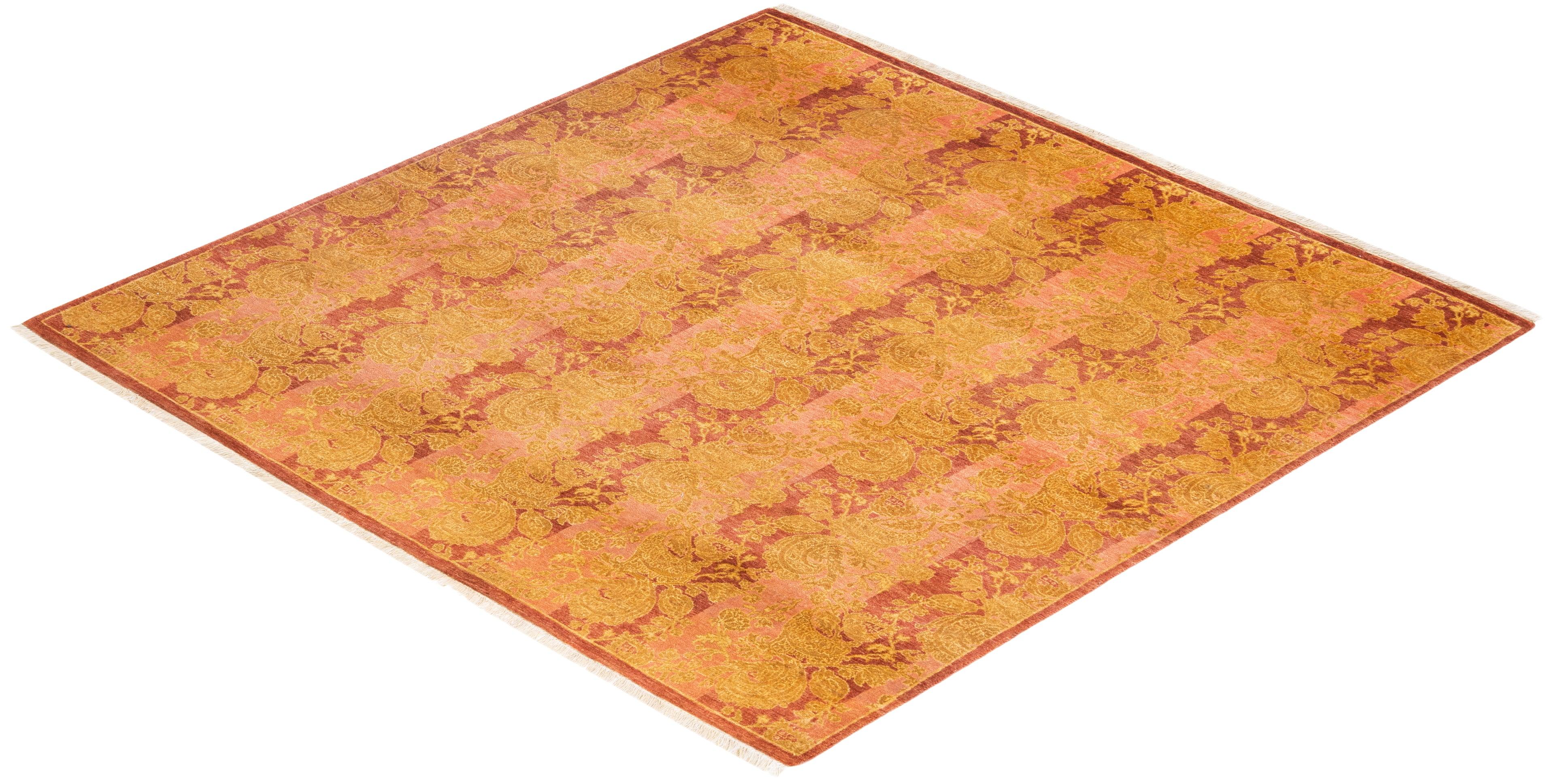 Traditional Hand Knotted Mogul Abstract Pink Square Area Rug 4' 7" x 4' 7"