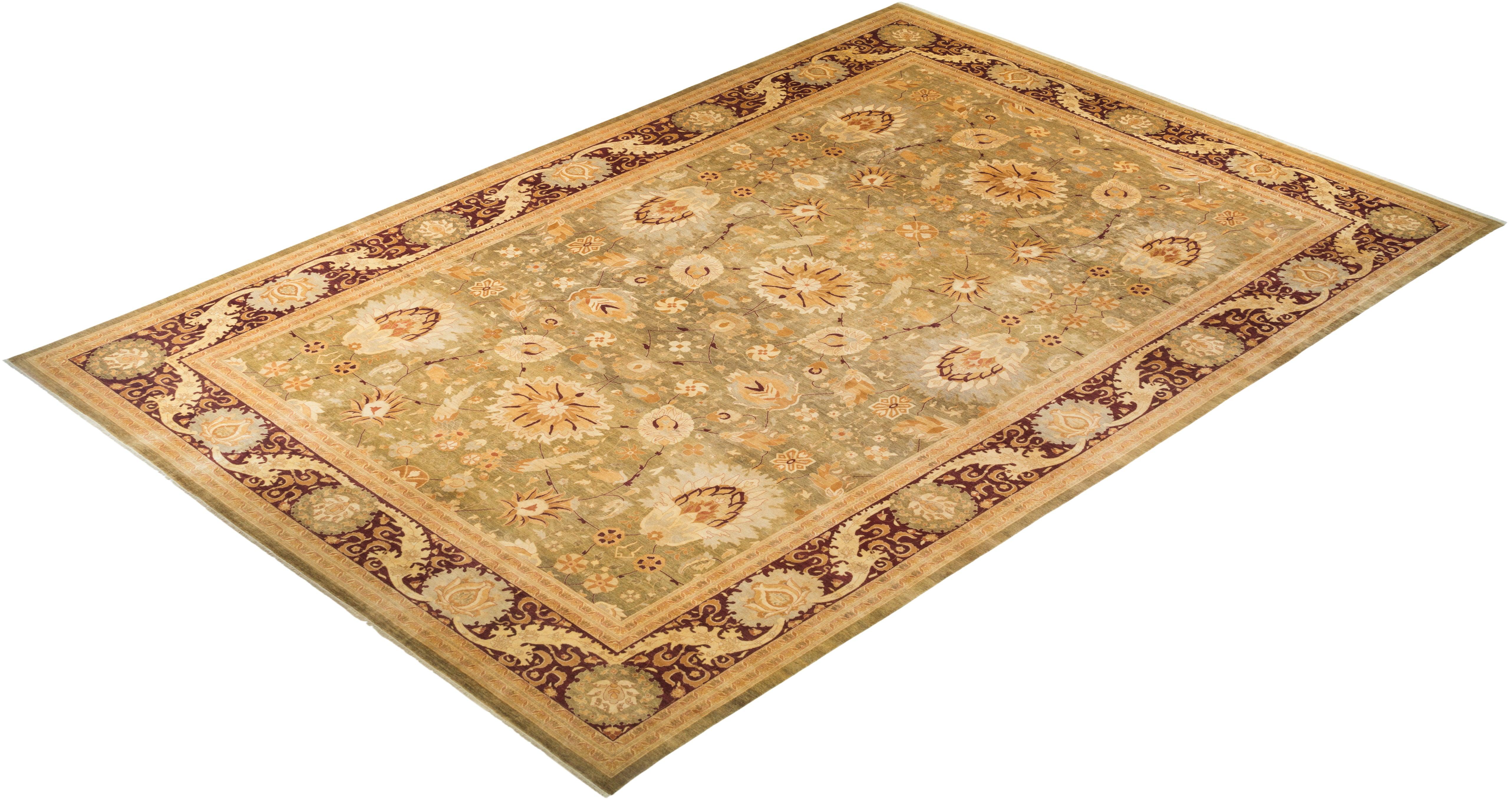 Traditional Hand Knotted Mogul Floral Green Area Rug 12' 2" x 17' 9"