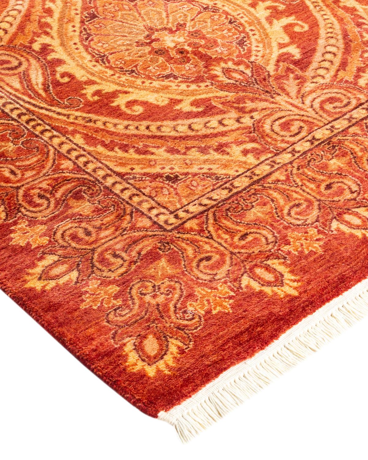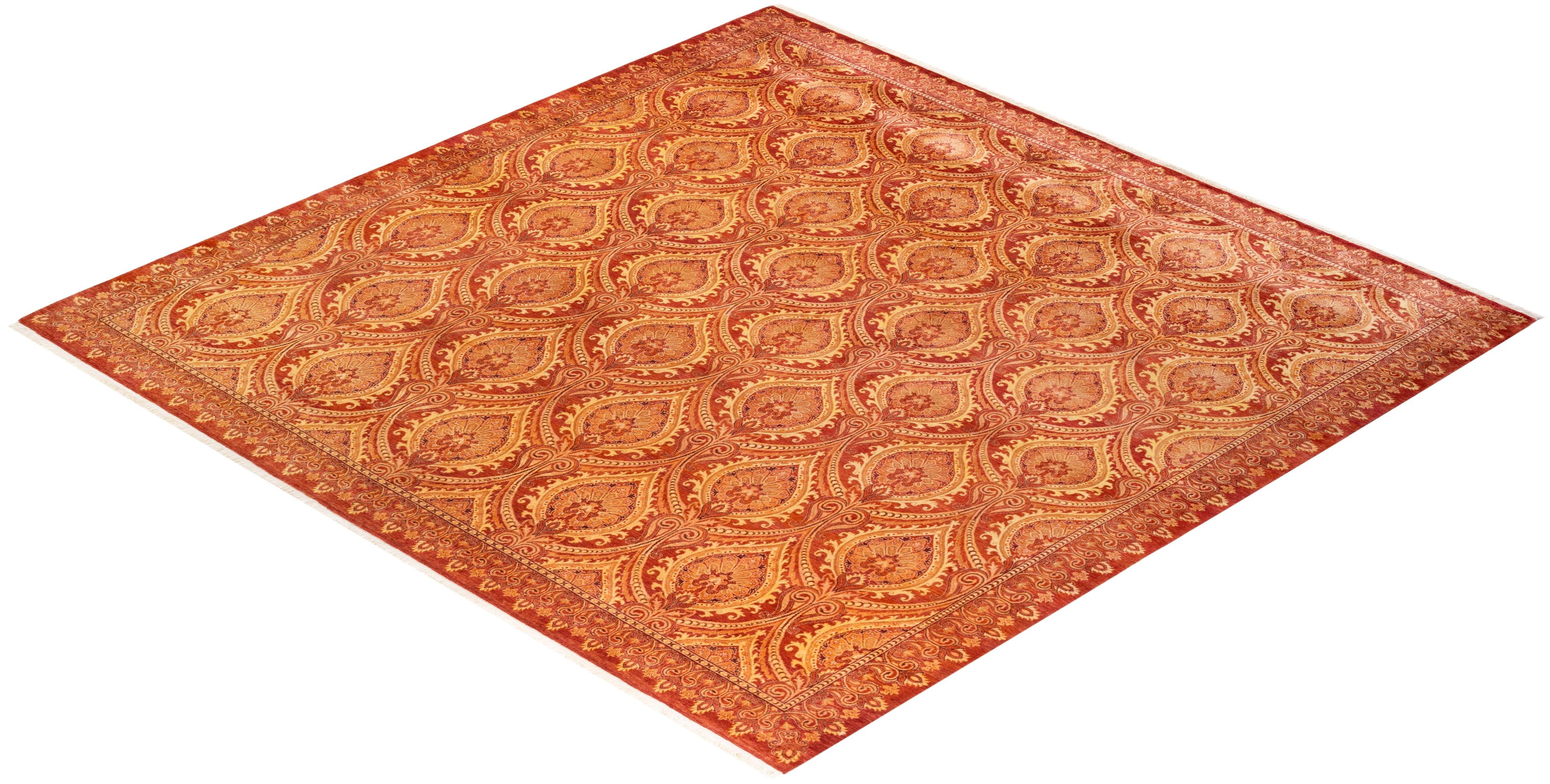 Traditional Hand Knotted Mogul Paisley Red Square Area Rug 9' 1" x 9' 1"