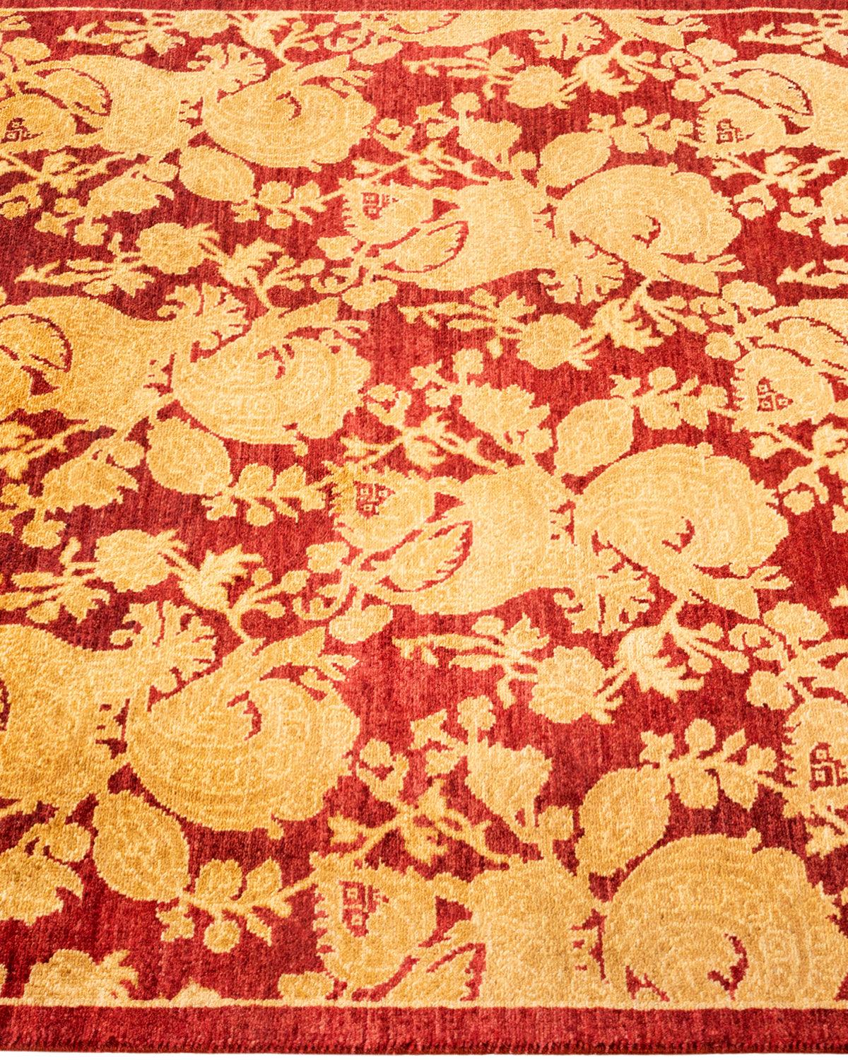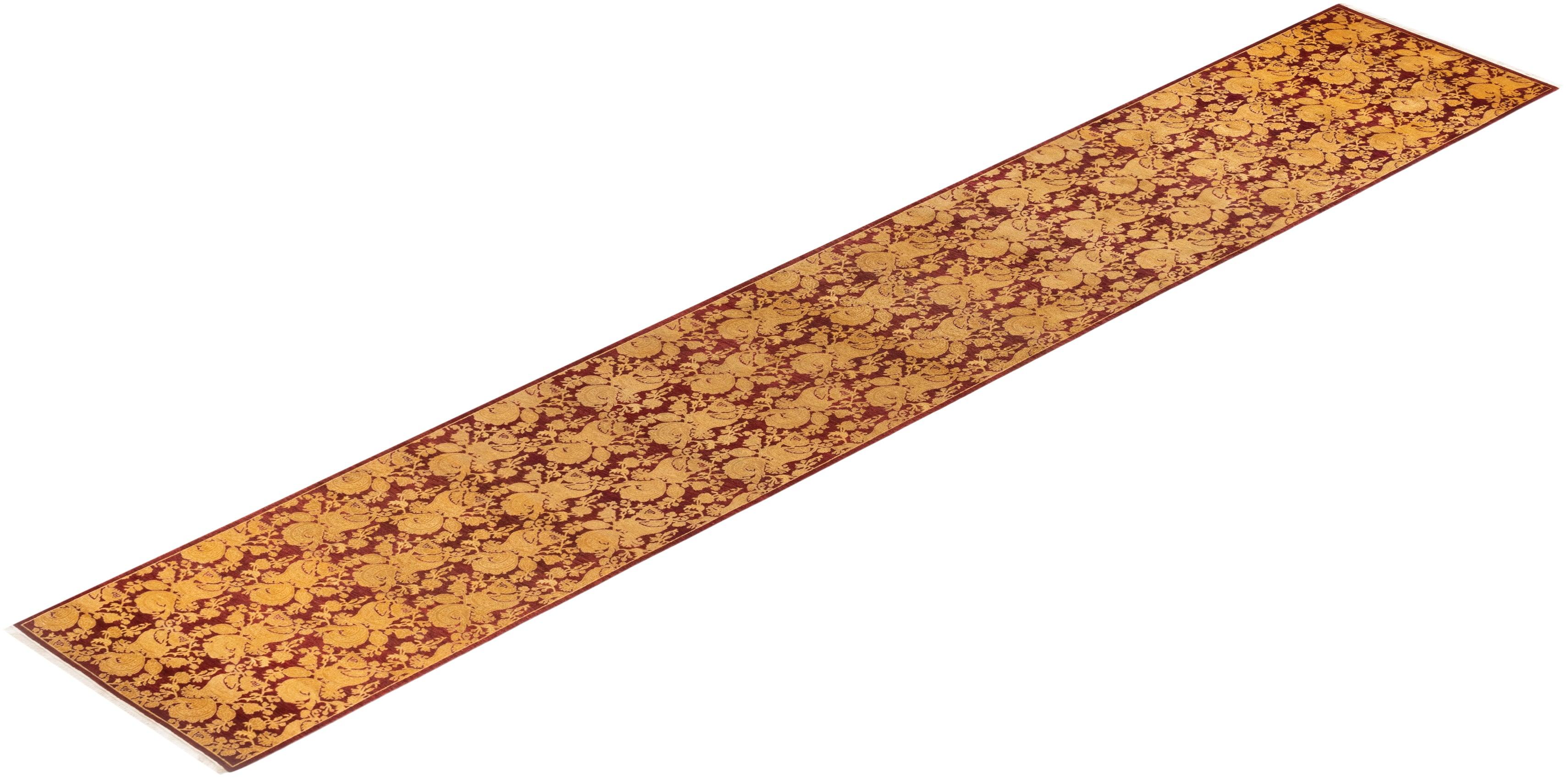 Traditional Hand Knotted Mogul Abstract Red Runner 2' 9" x 16' 7"