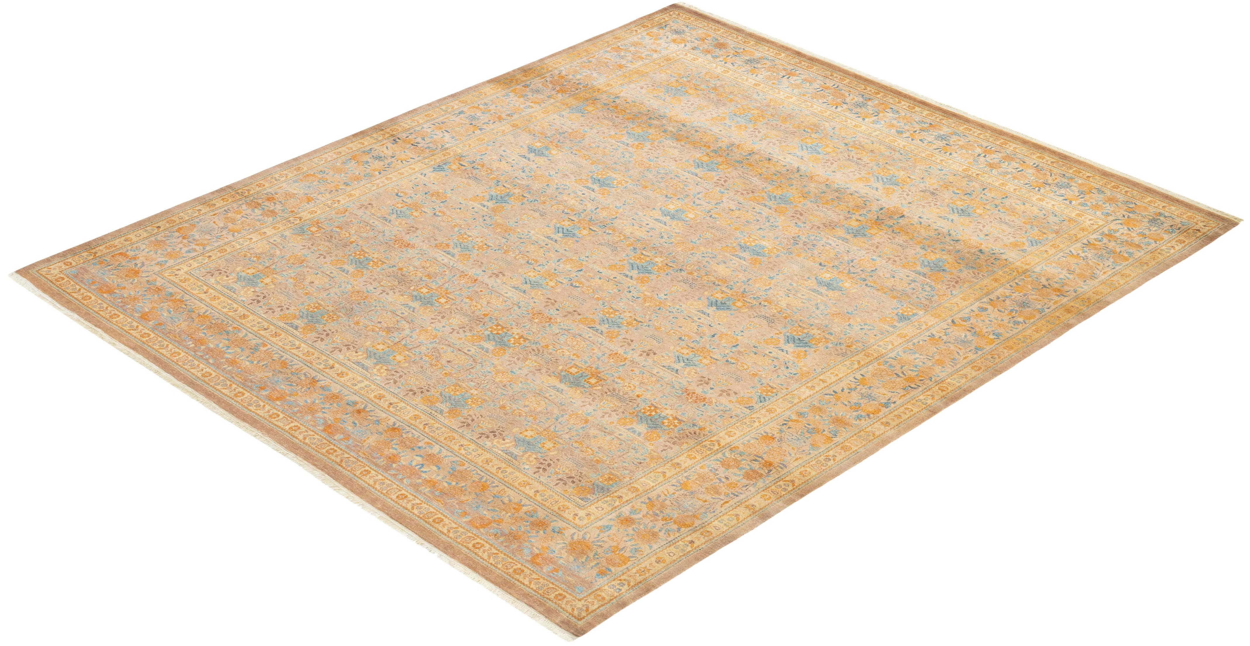 Traditional Hand Knotted Mogul Floral Beige Area Rug 8' 3" x 9' 8"