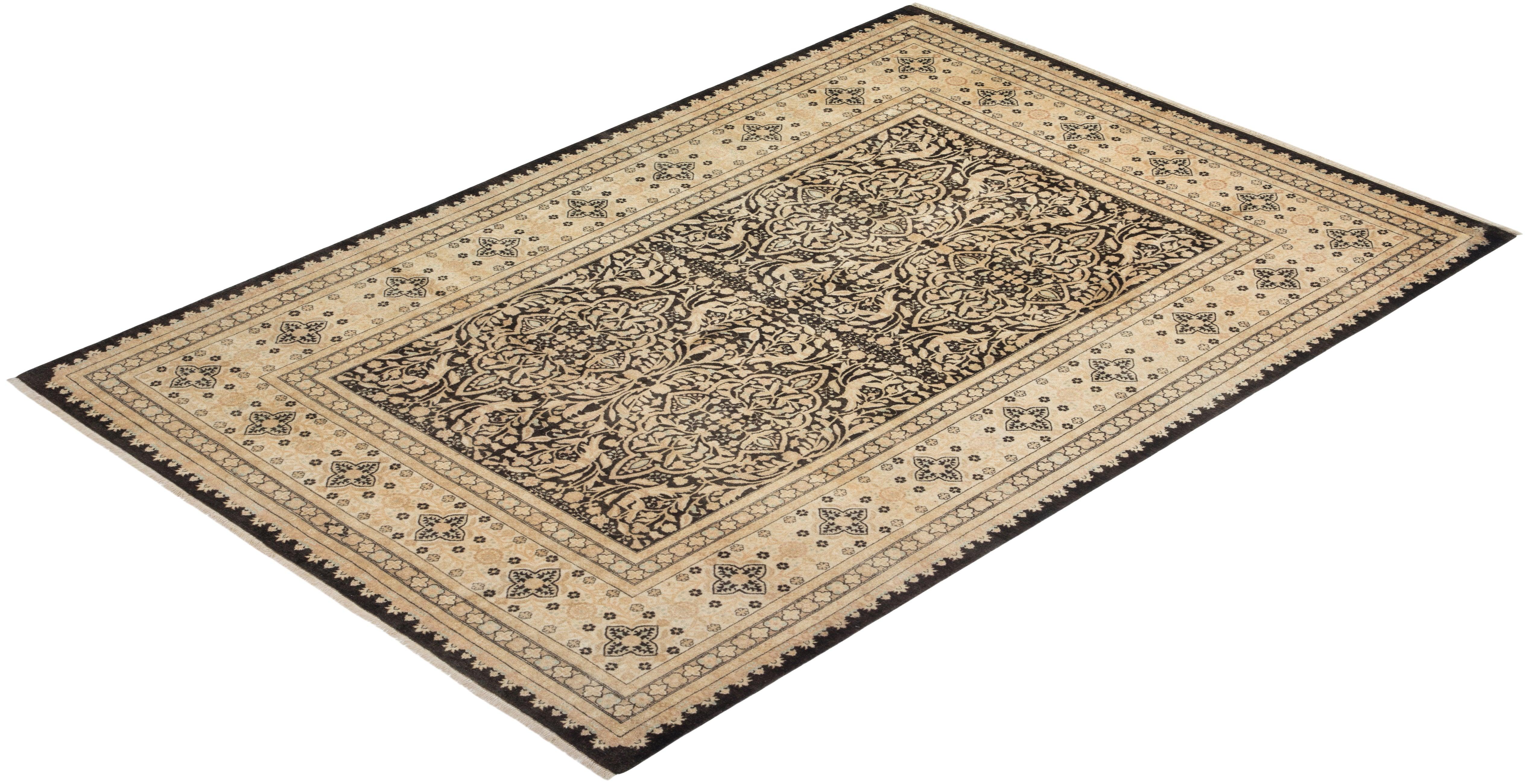 Traditional Hand Knotted Mogul Floral Black Area Rug 6' 1" x 8' 10"