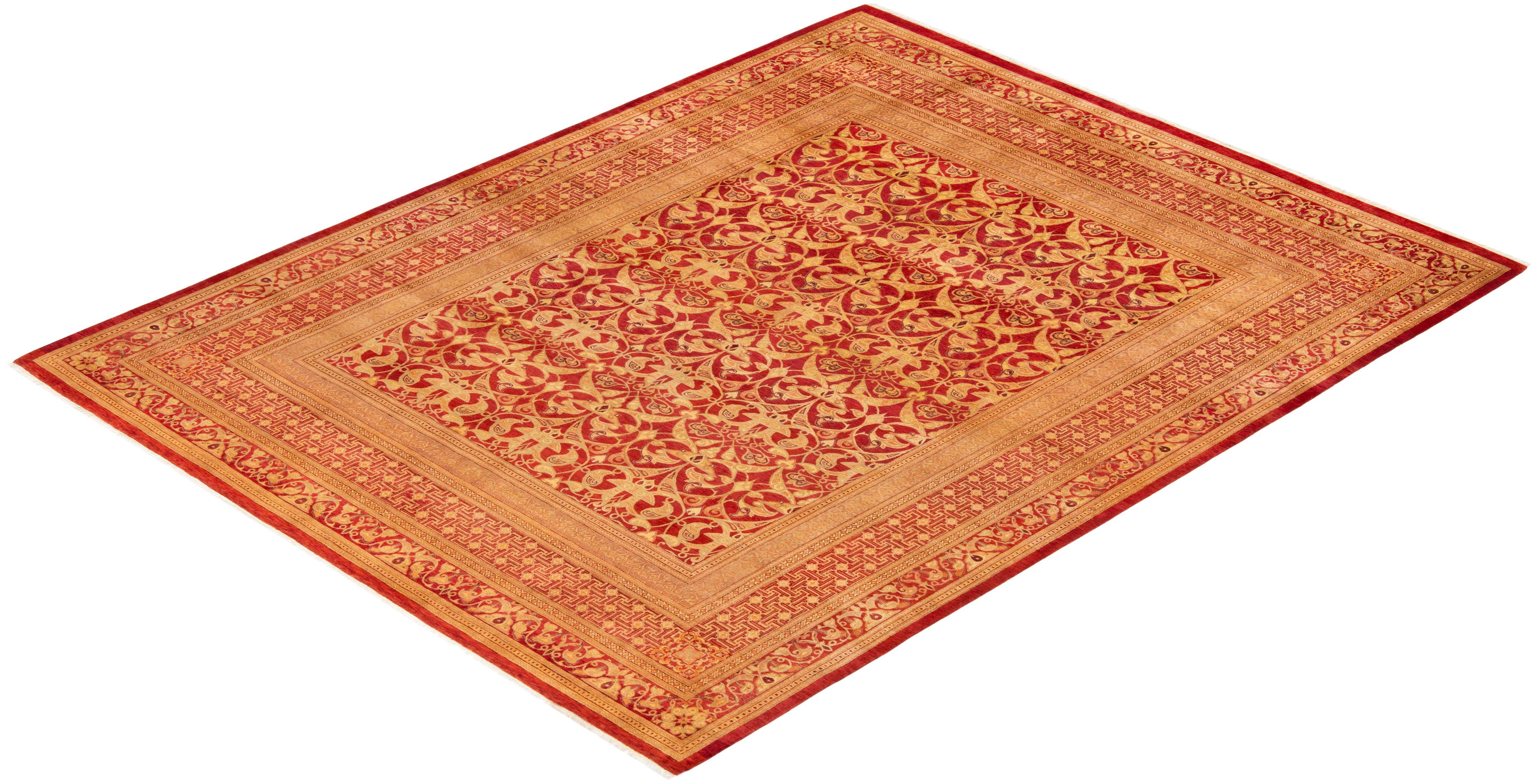Traditional Hand Knotted Mogul Red Area Rug 8' 2" x 10' 5"