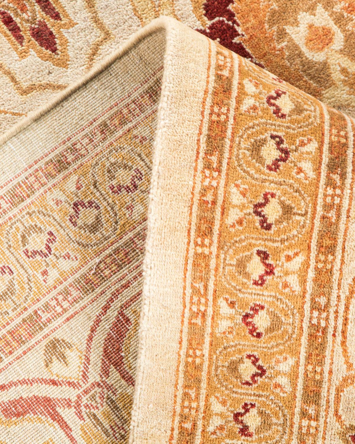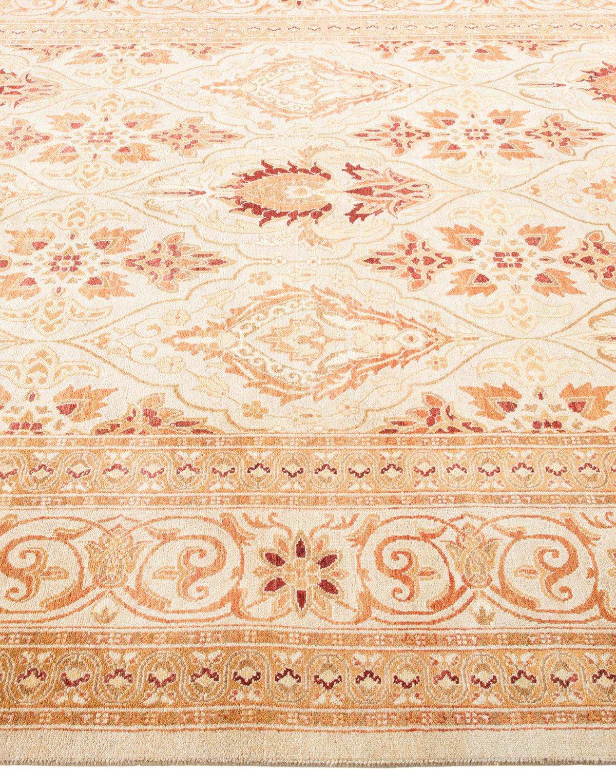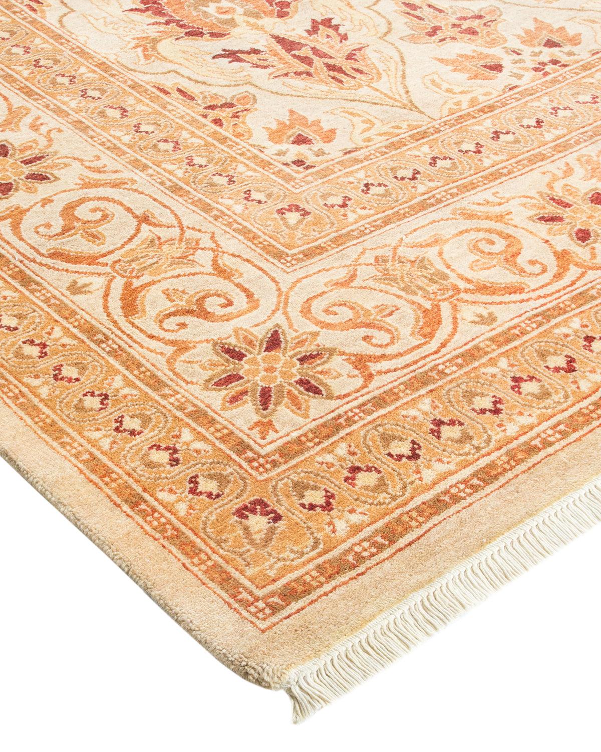 Traditional Hand Knotted Mogul Floral Ivory Area Rug 6' 1" x 9' 2"