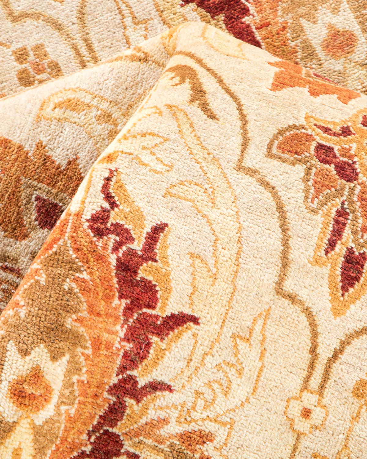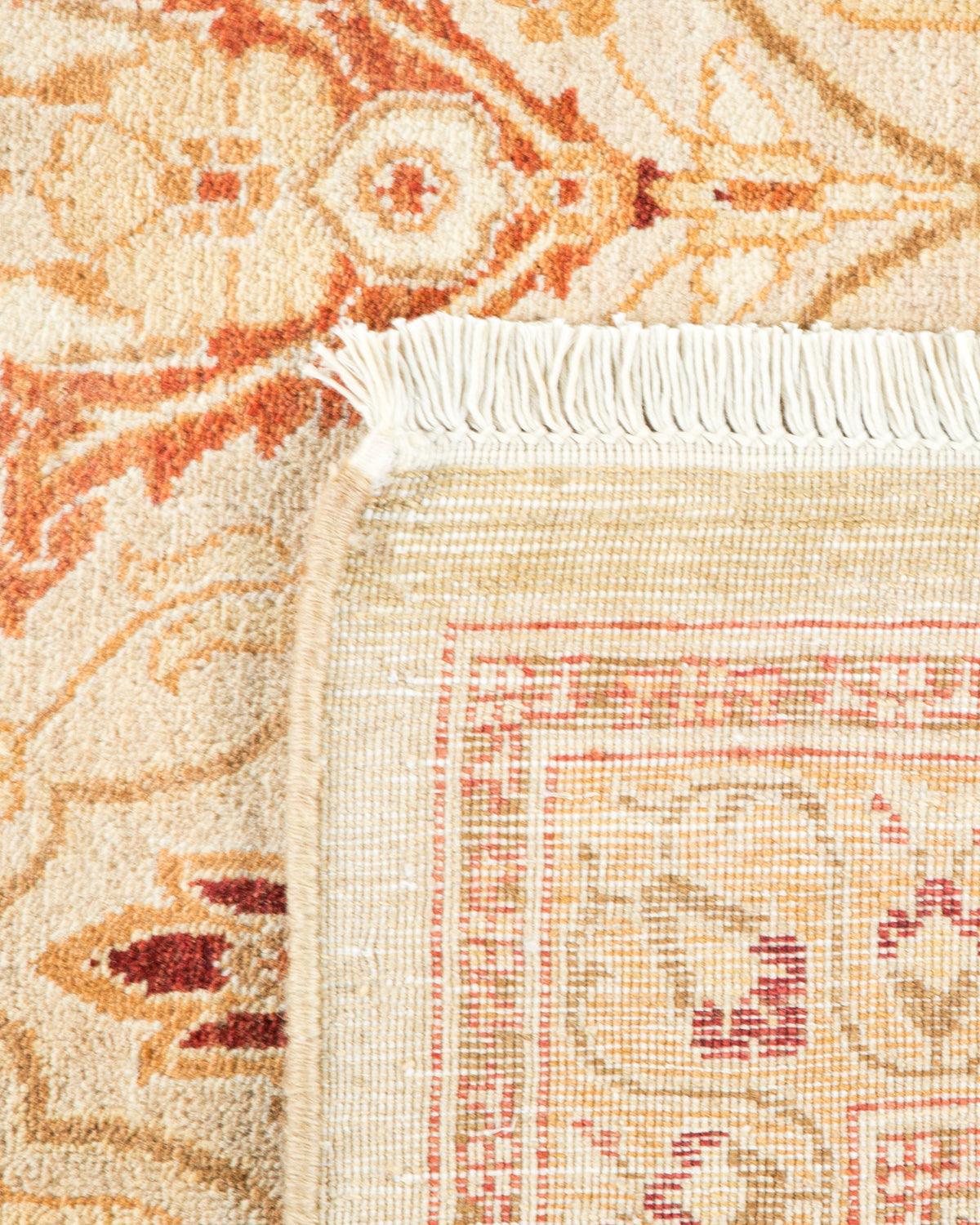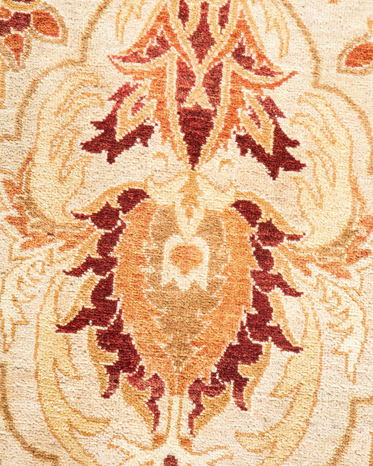 Traditional Hand Knotted Mogul Floral Ivory Area Rug 6' 1" x 9' 2"