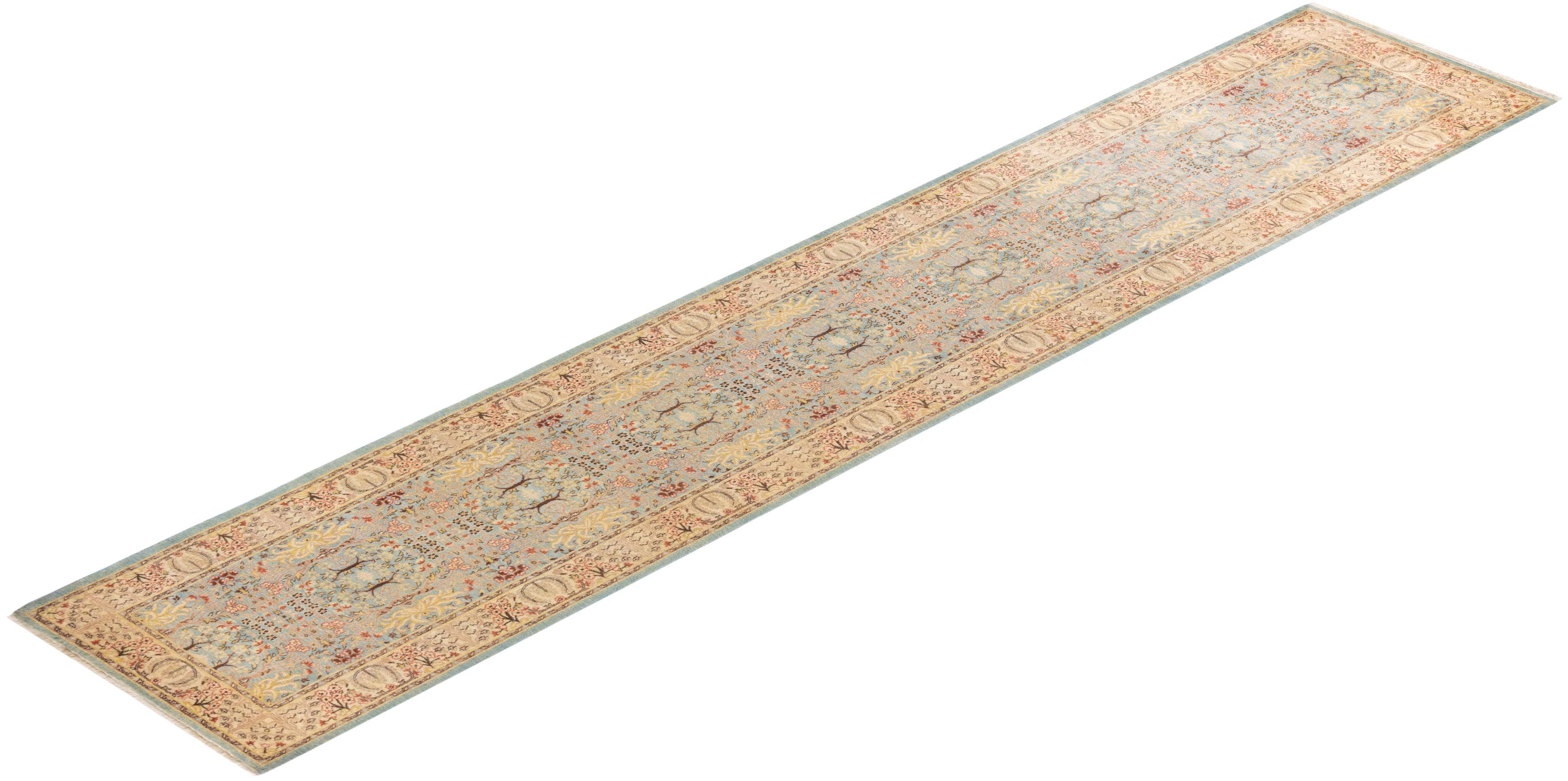Traditional Hand Knotted Mogul Oriental Light Blue Runner 2' 7" x 13' 7"