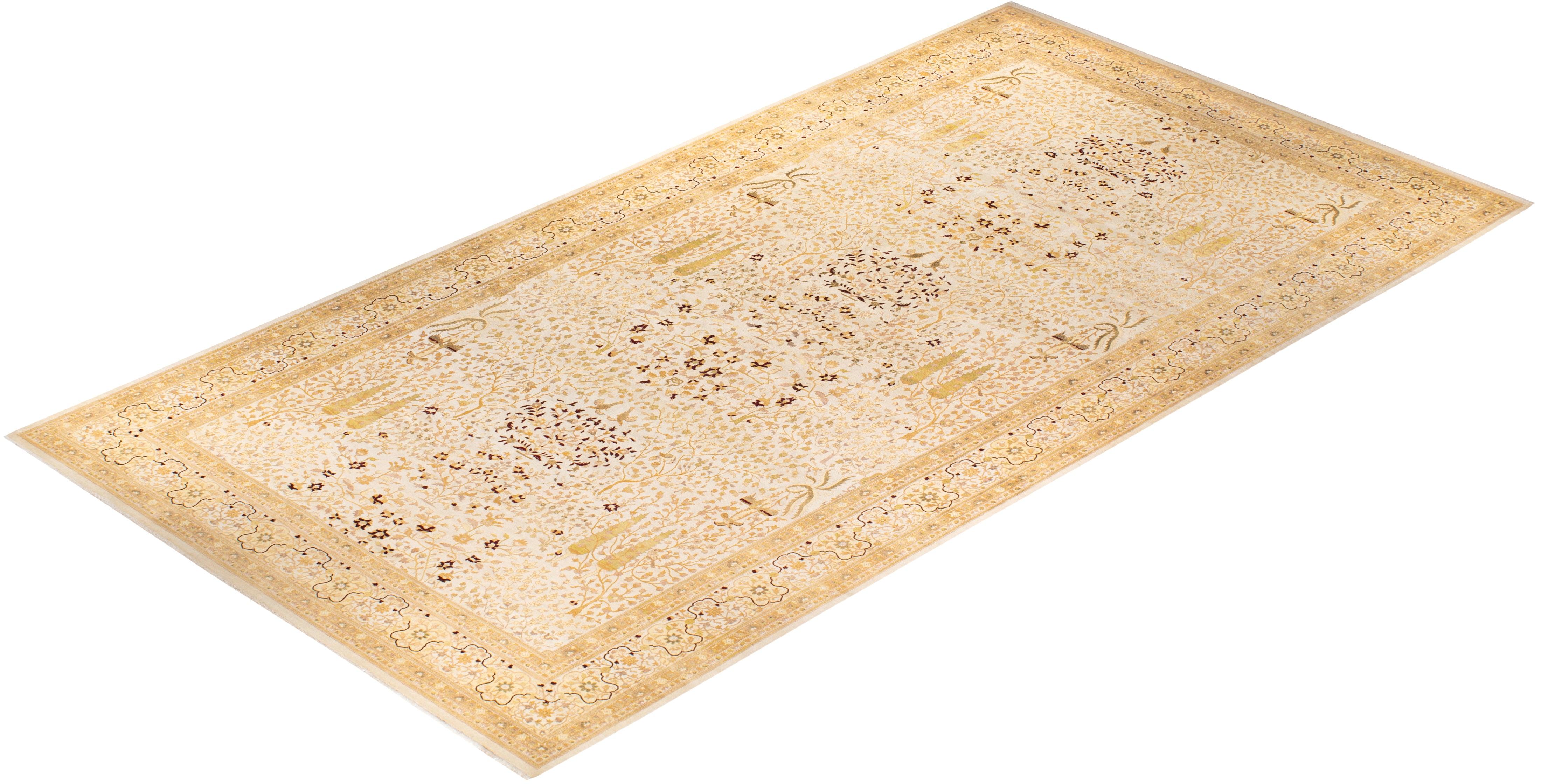 Traditional Hand Knotted Mogul Floral Ivory Runner 10' 2" x 20' 3"
