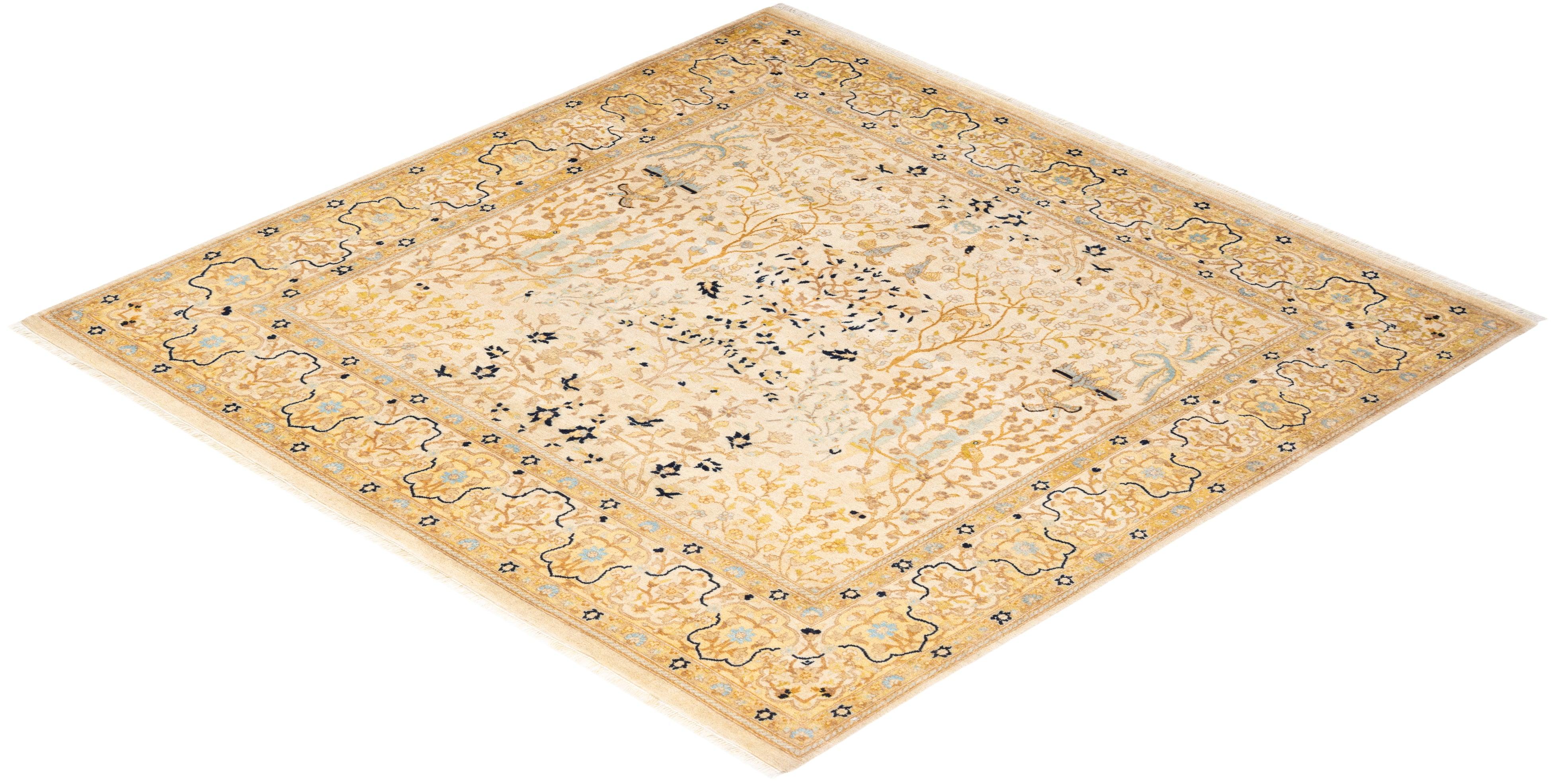 Traditional Hand Knotted Mogul Oriental Ivory Square Area Rug 6' 2" x 6' 2"