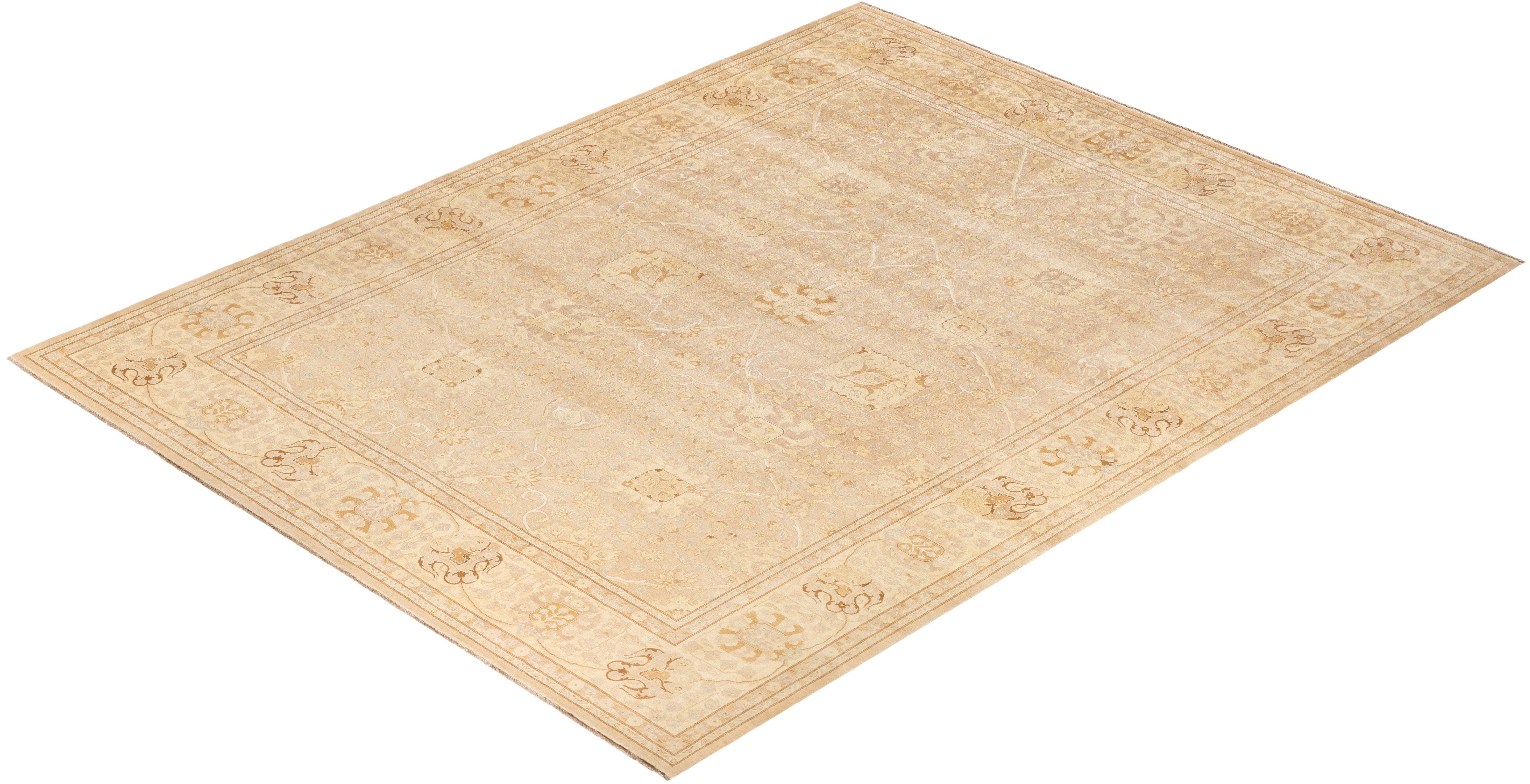 Traditional Hand Knotted Mogul Oriental Beige Area Rug 9' 1" x 12' 1"