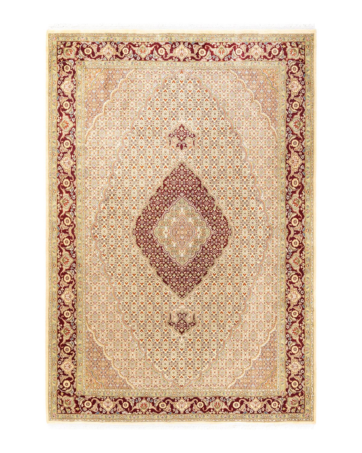 Traditional Hand Knotted Mogul Oriental Ivory Area Rug 6' 8" x 9' 9"