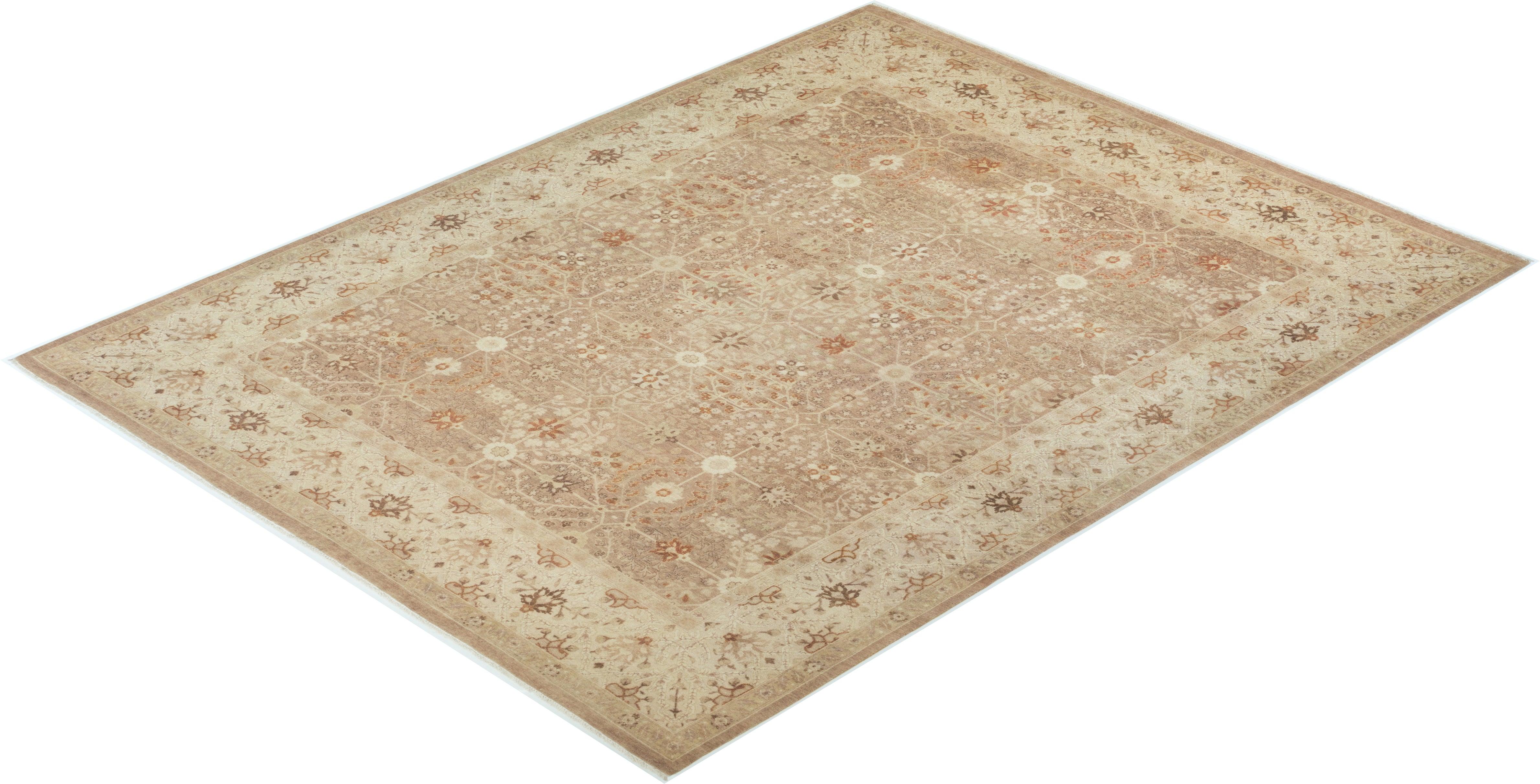 Traditional Hand Knotted Mogul Floral Beige Area Rug 8' 1" x 10' 4"