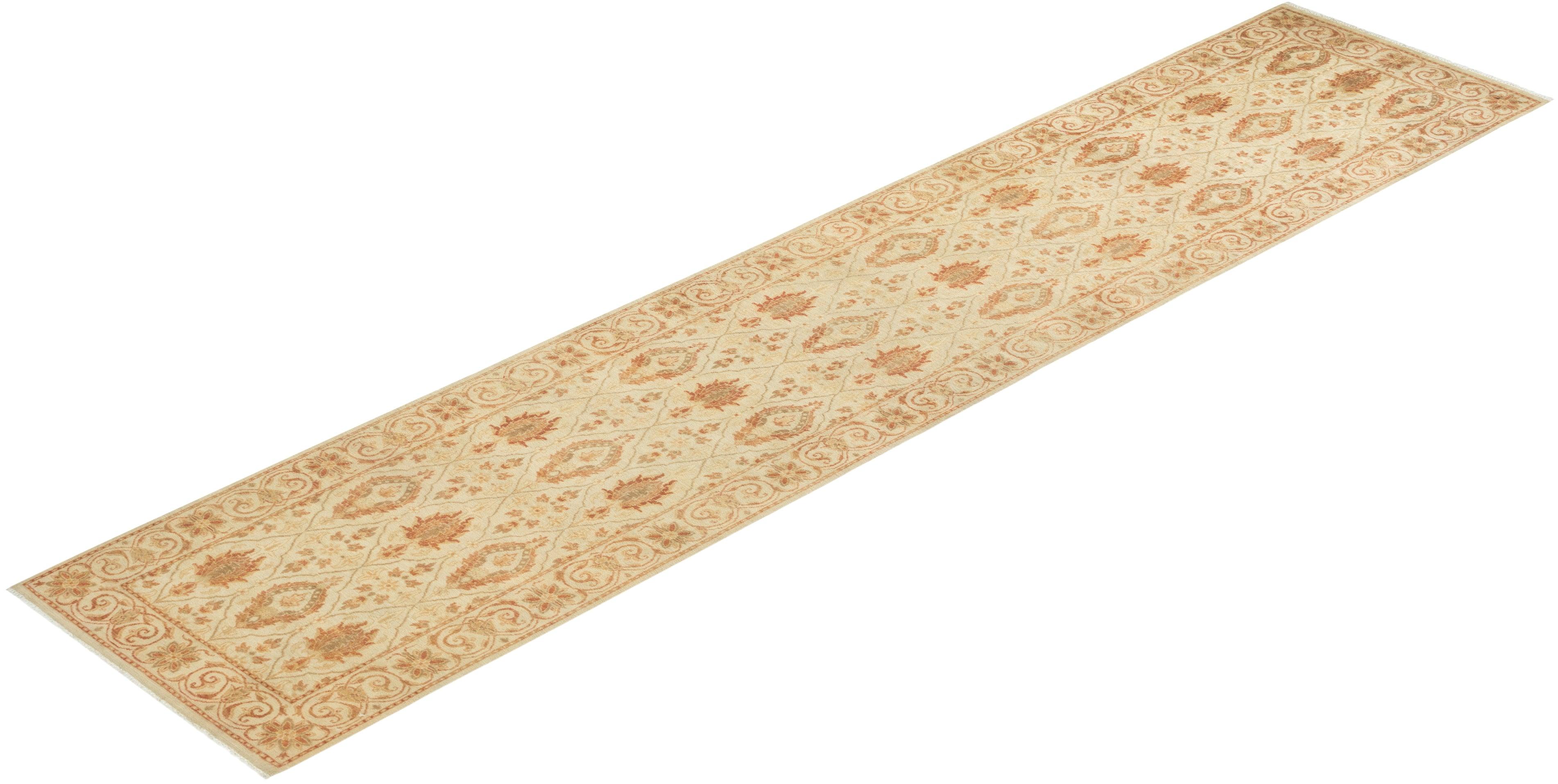 Traditional Hand Knotted Mogul Floral Ivory Runner 2' 7" x 11' 10"