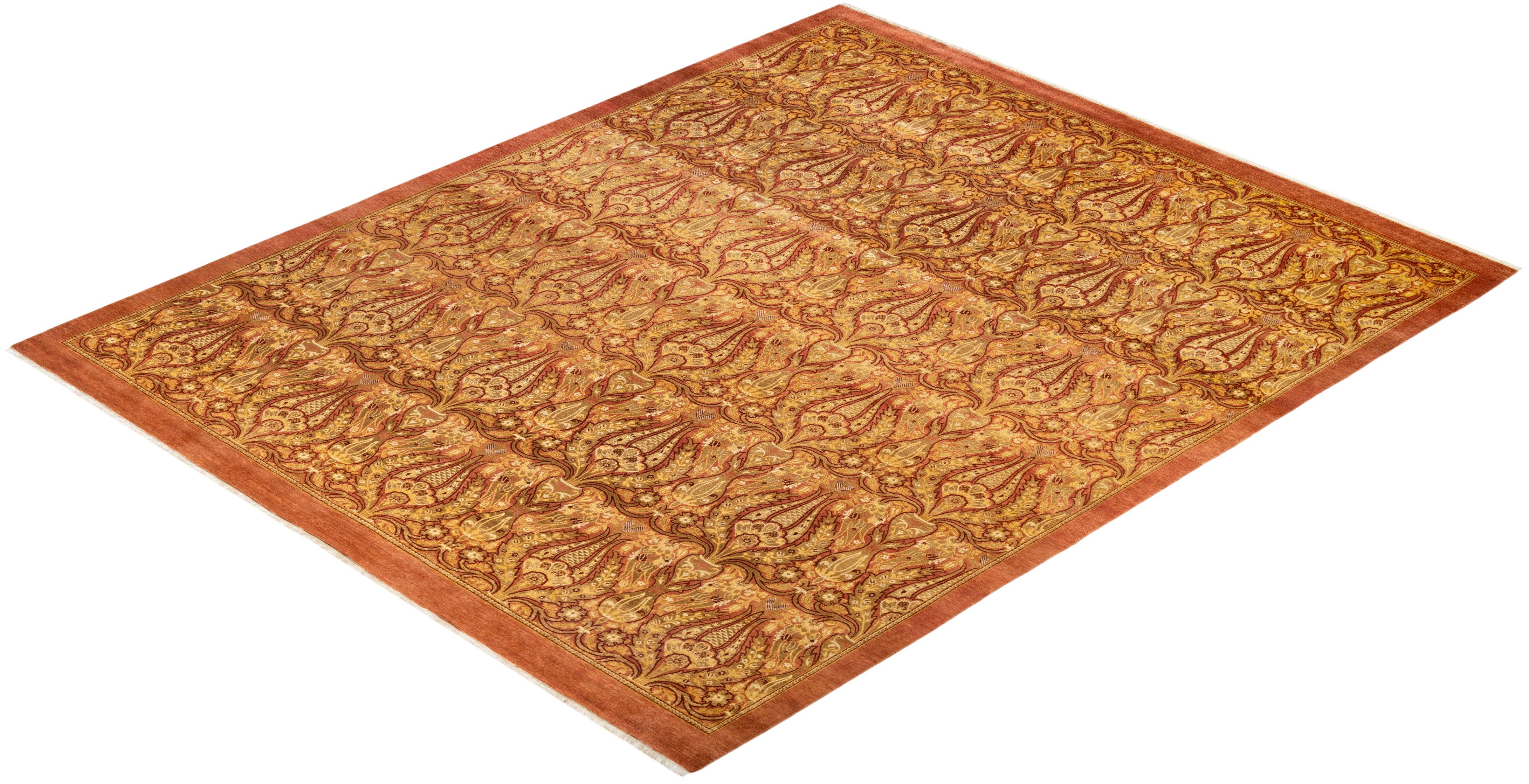 Traditional Hand Knotted Mogul Floral Orange Area Rug 8' 0" x 9' 10"
