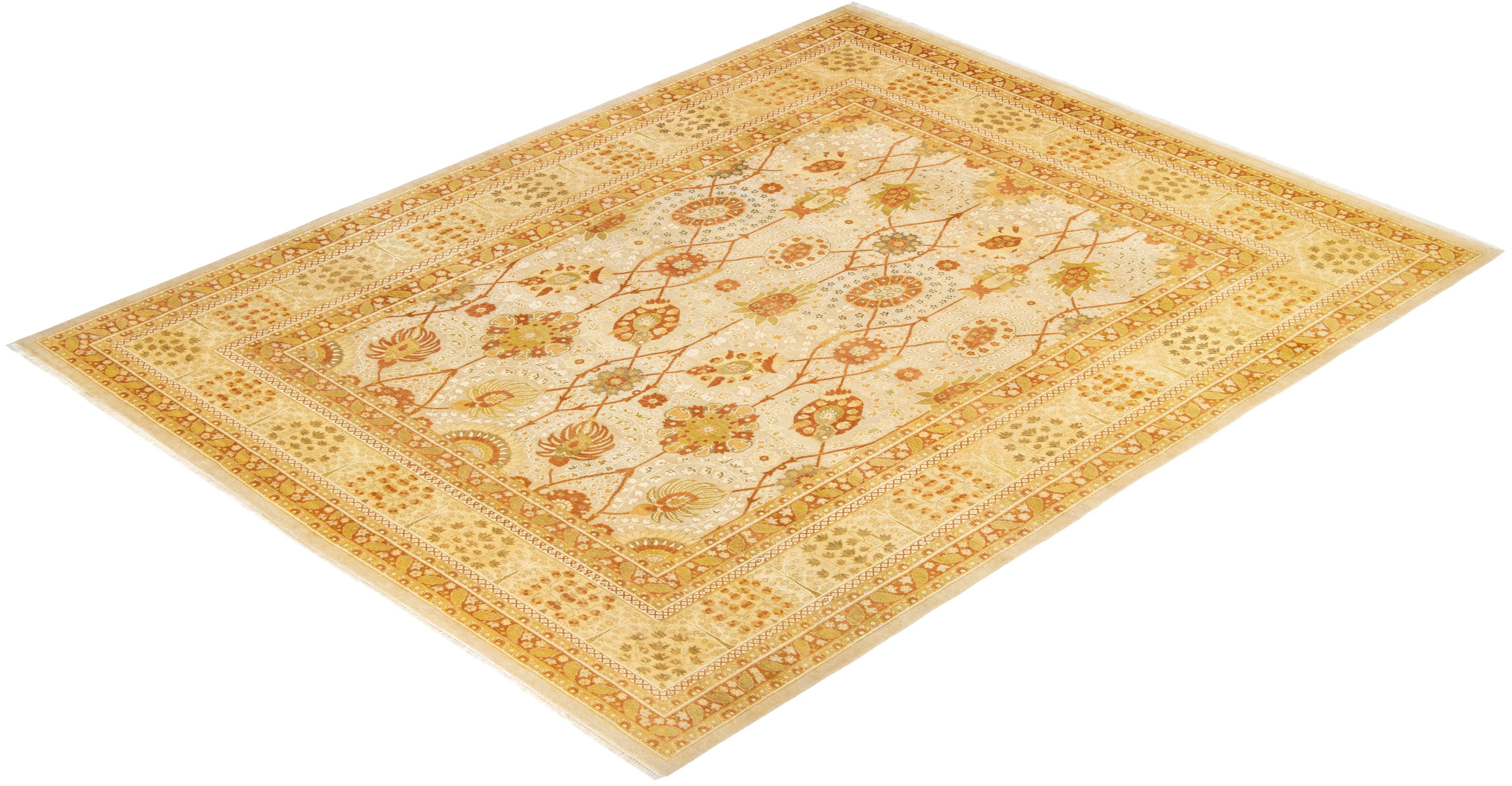Traditional Hand Knotted Mogul Oriental Ivory Area Rug 8' 2" x 10' 5"