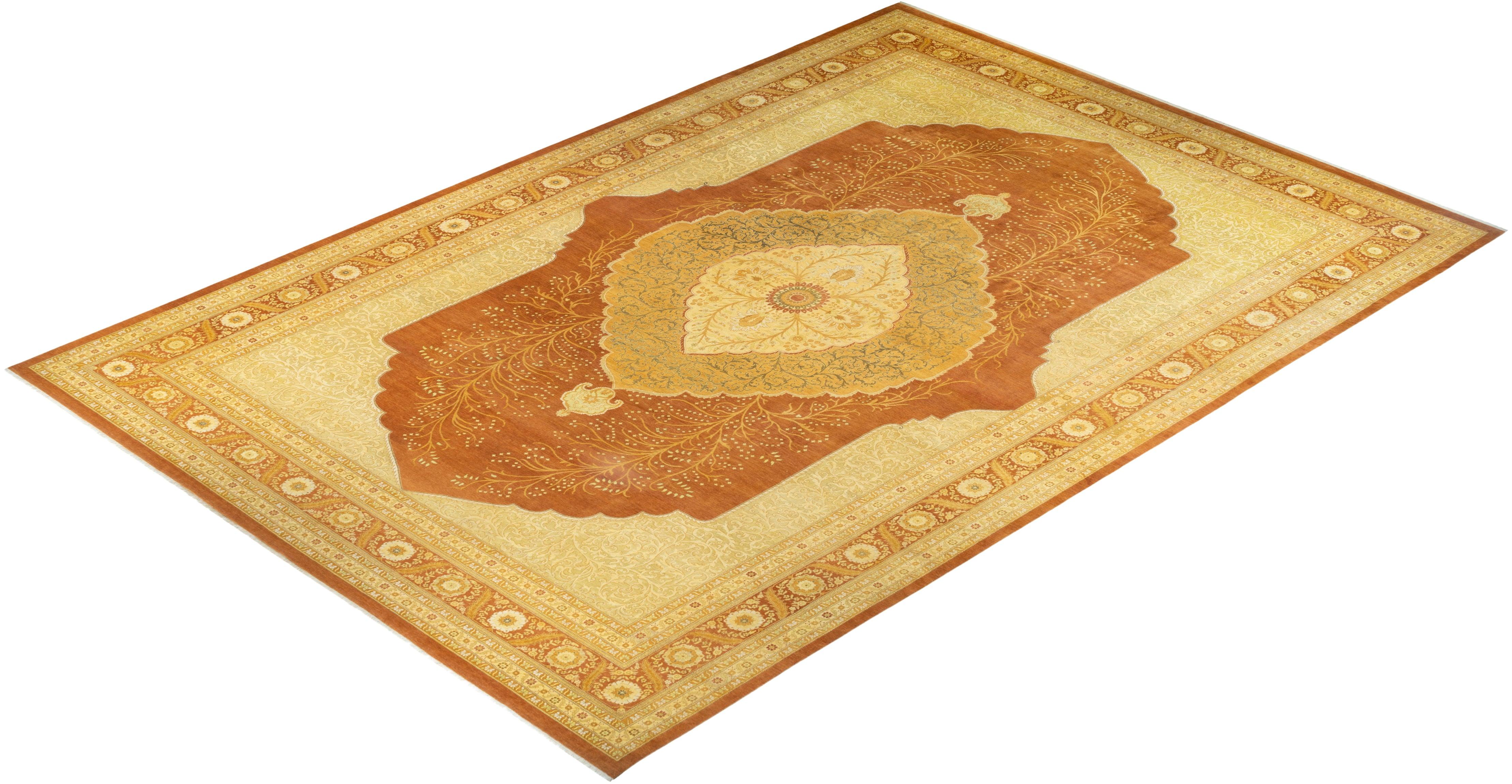 Traditional Hand Knotted Mogul Floral Brown Area Rug 12' 5" x 17' 9"