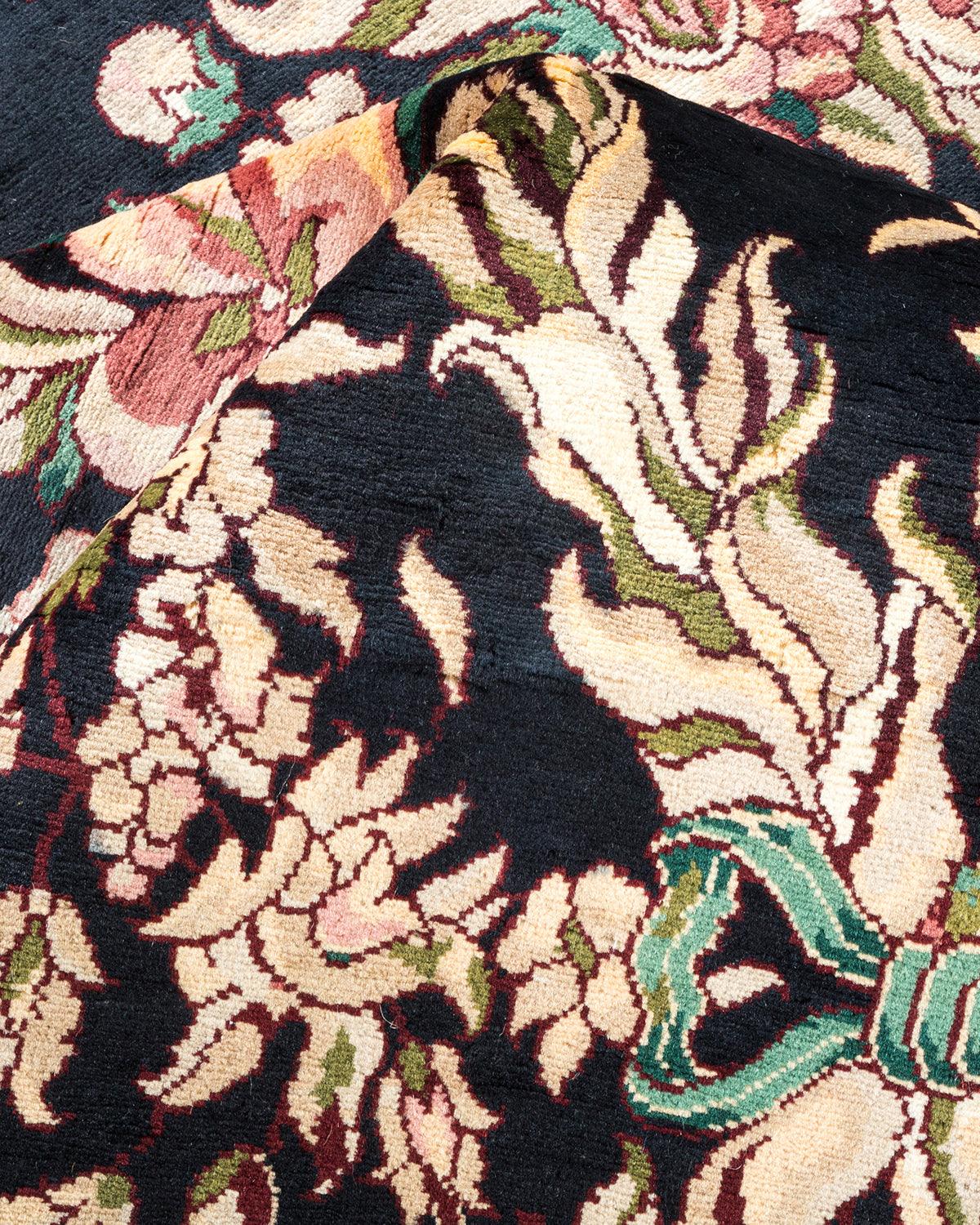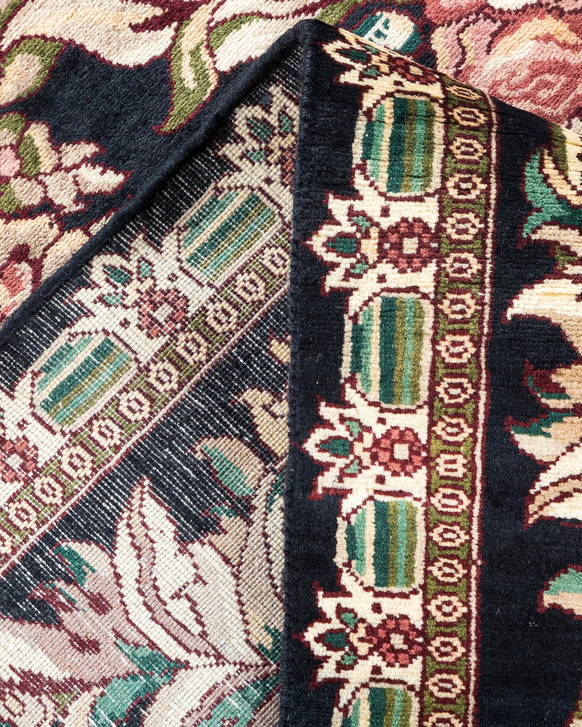 Traditional Hand Knotted Mogul Floral Black Area Rug 6' 0" x 8' 10"