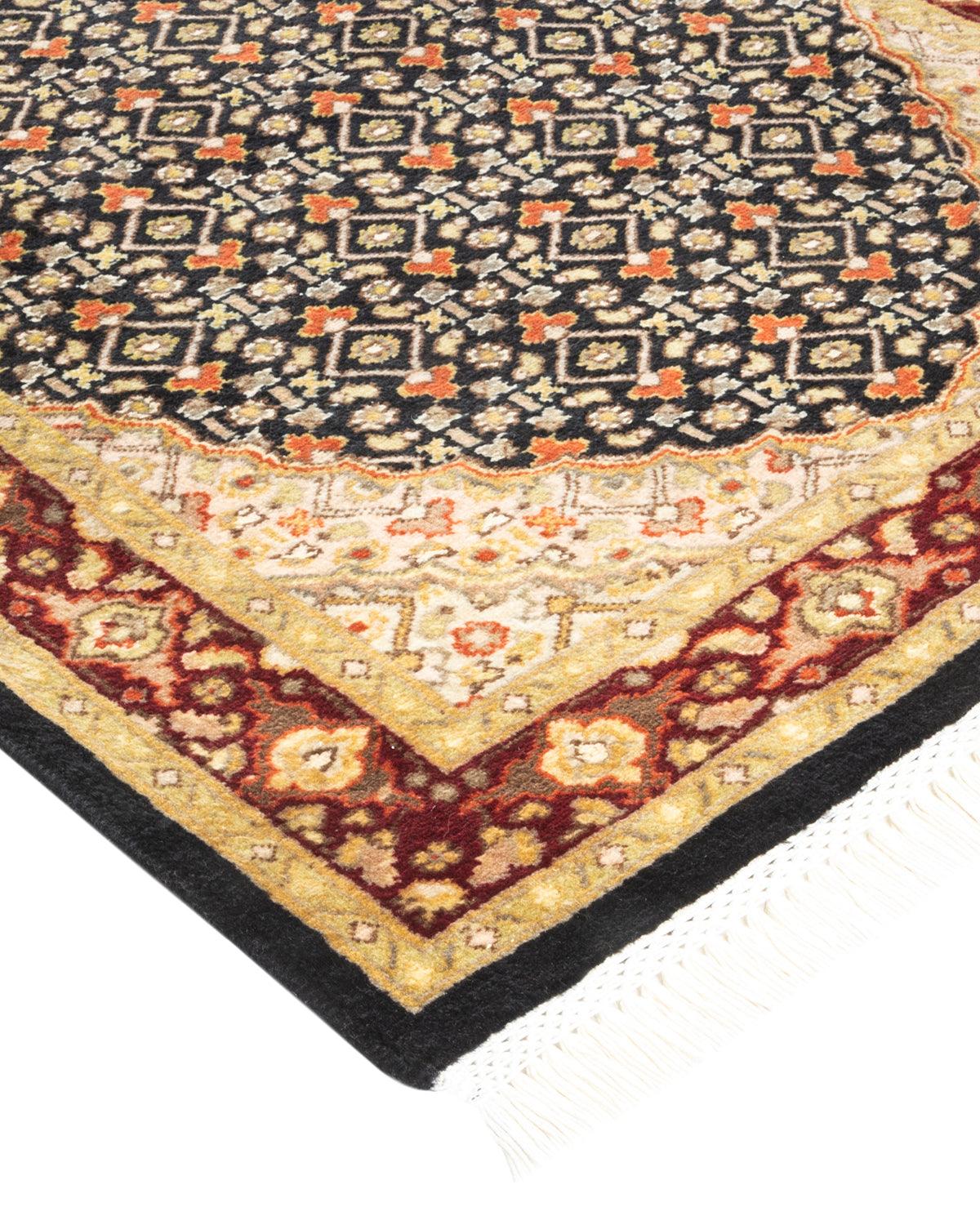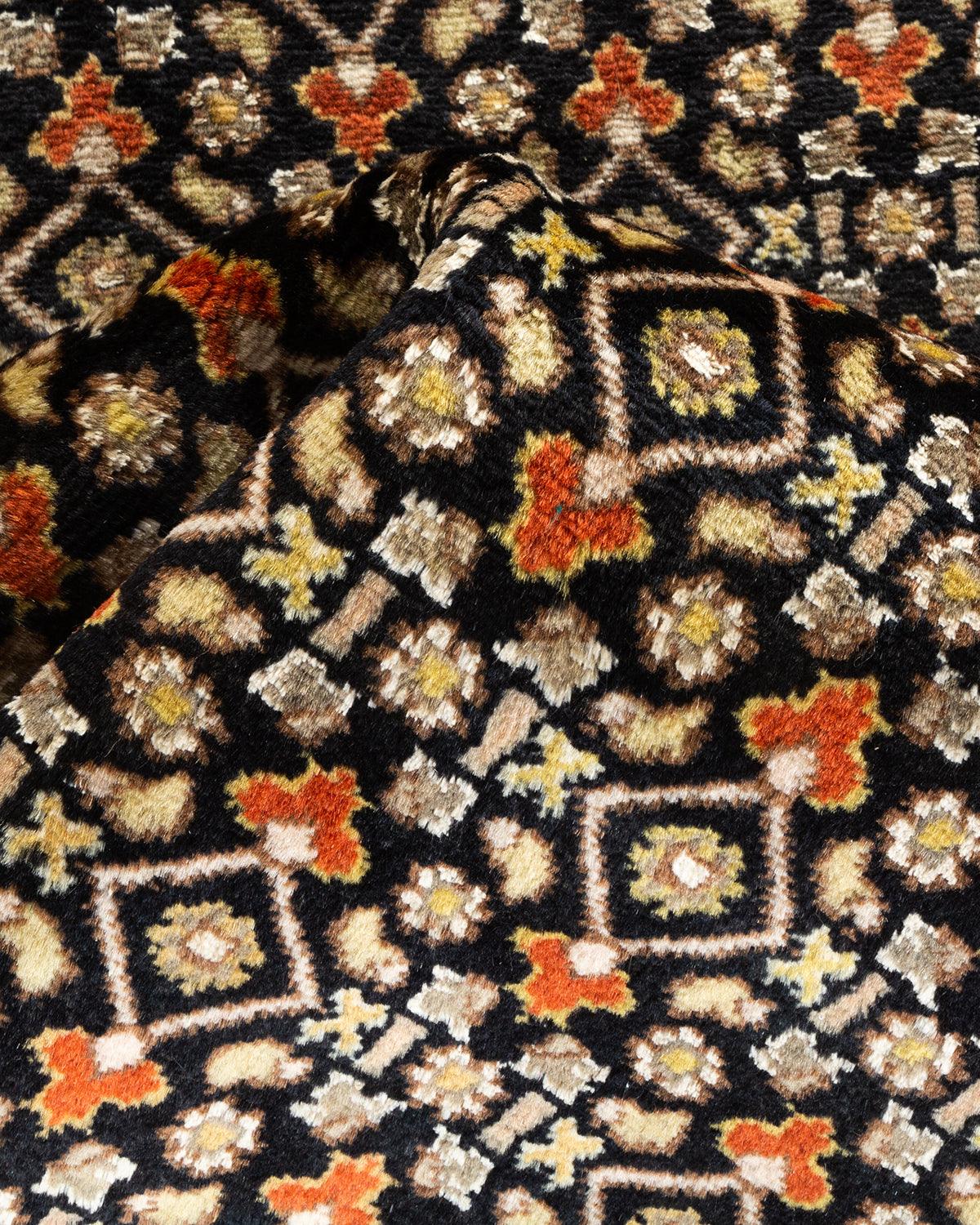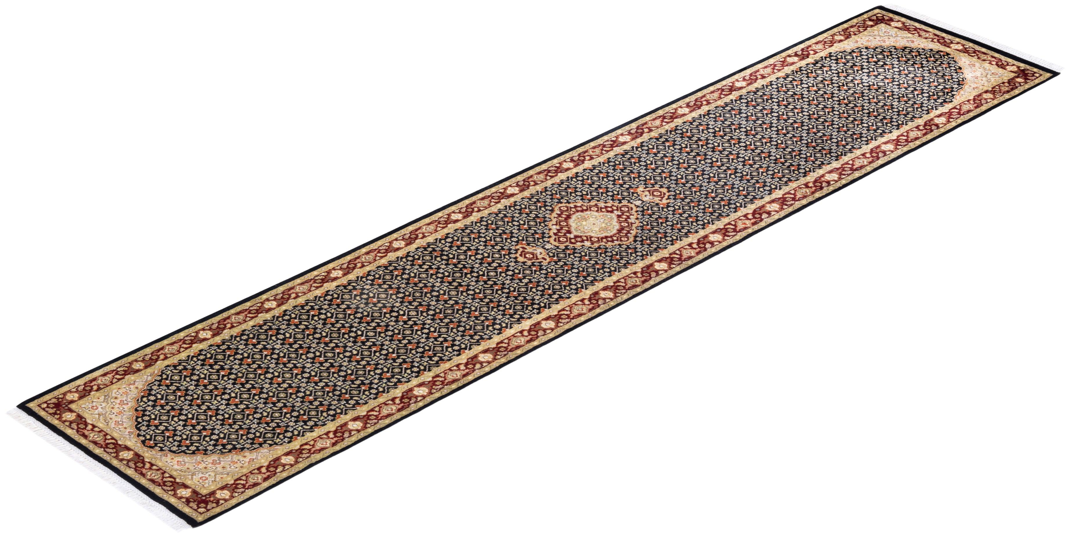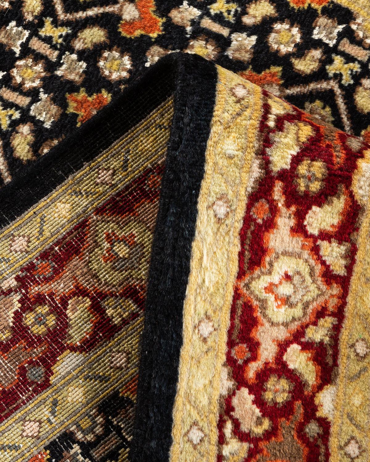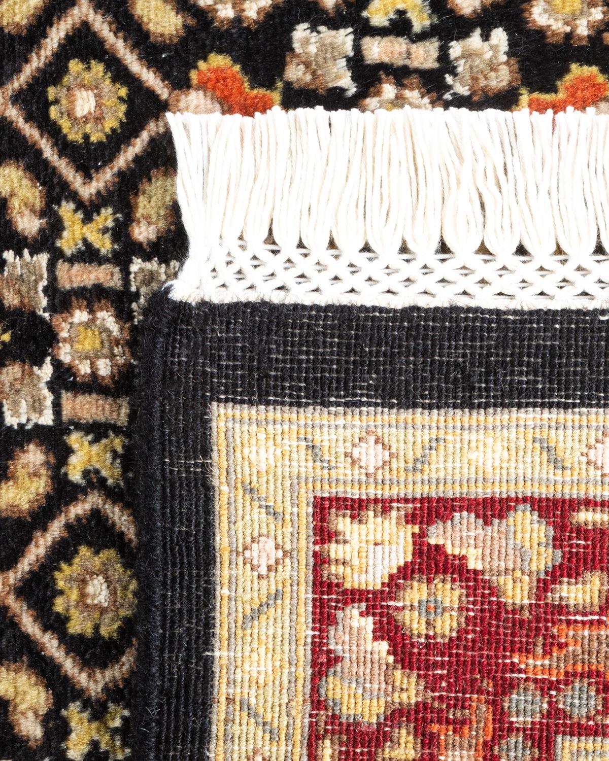 Traditional Hand Knotted Mogul Oriental Black Runner 2' 7" x 12' 2"