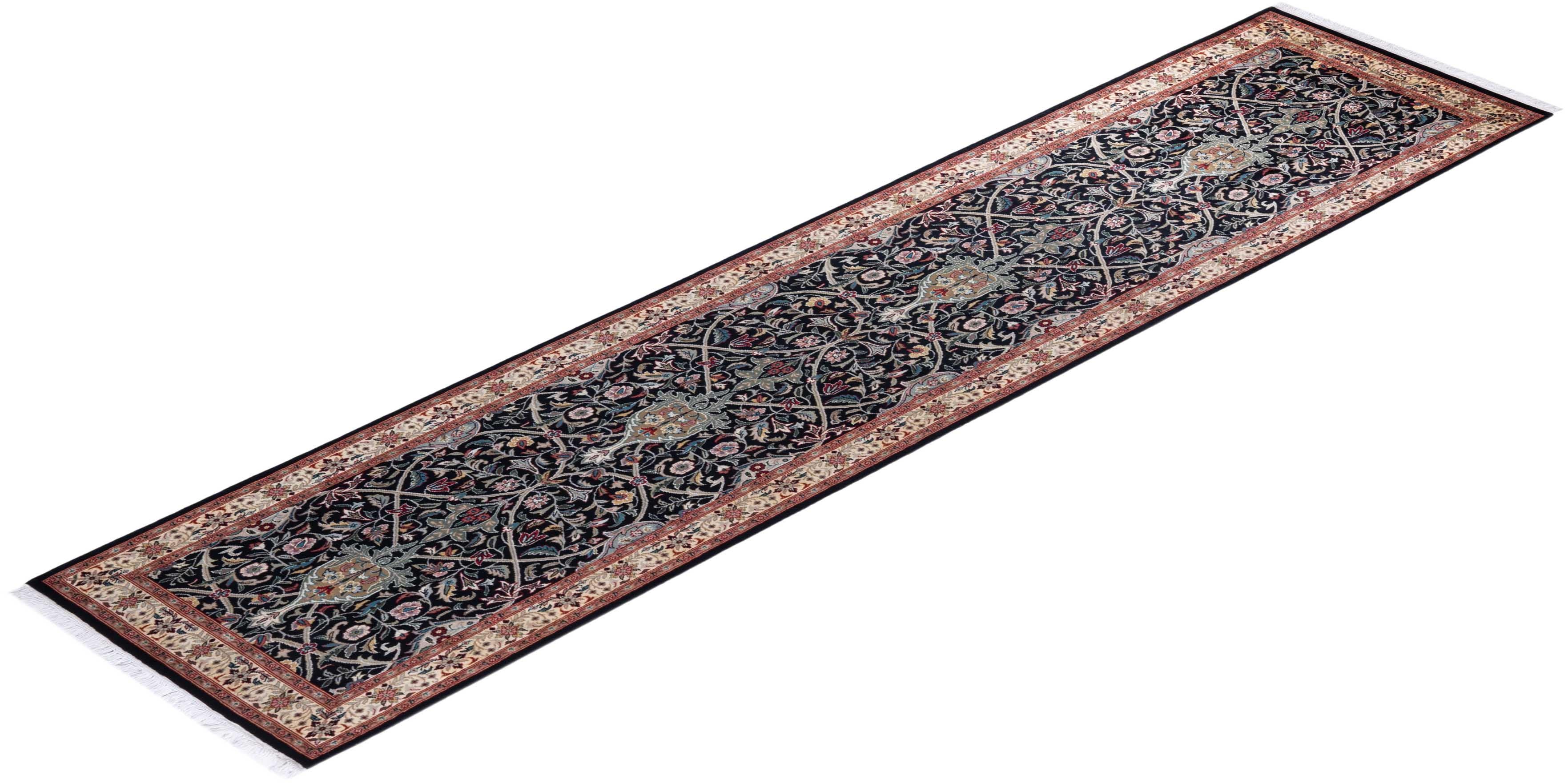 Traditional Hand Knotted Mogul Oriental Black Runner 2' 8" x 12' 3"