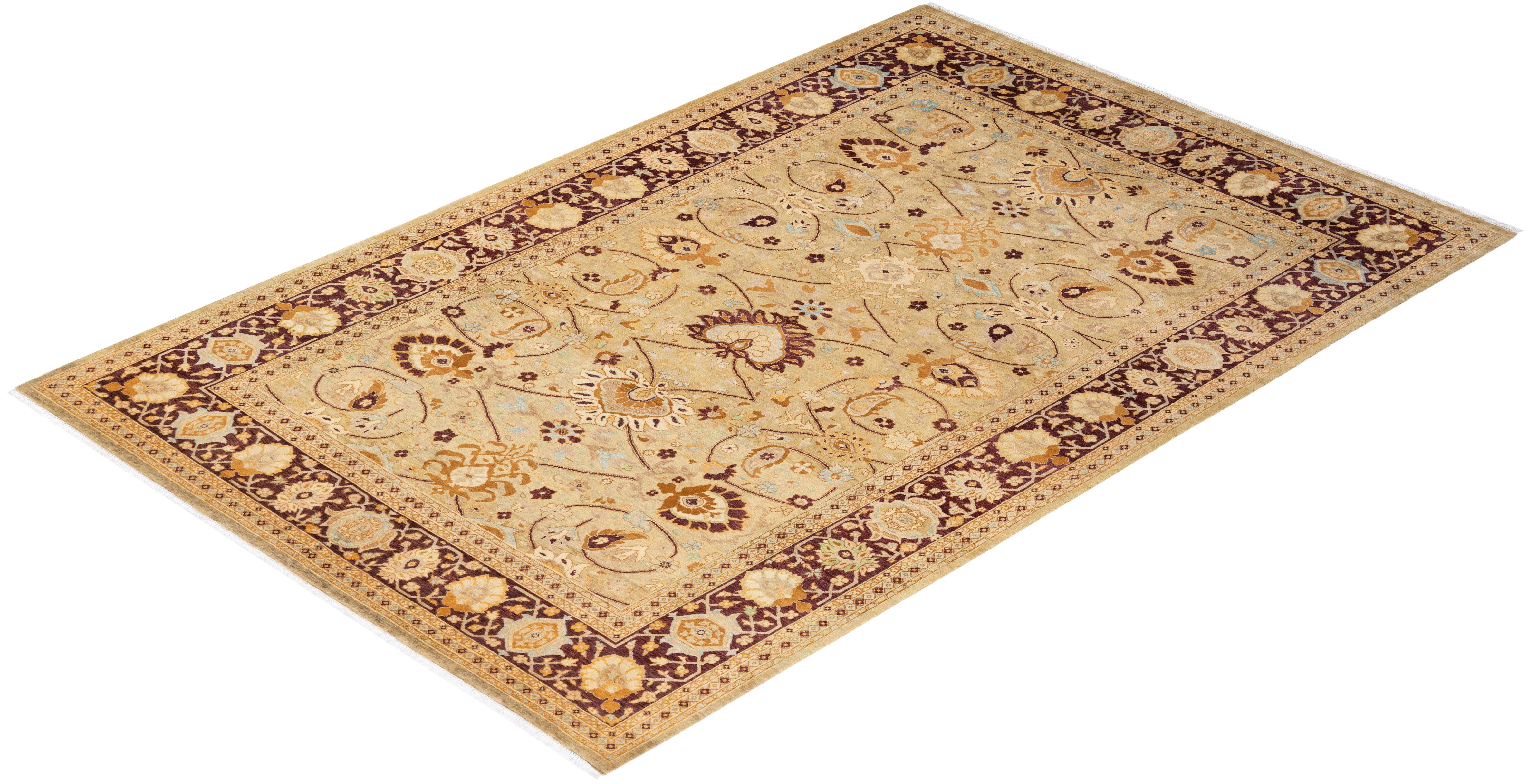 Traditional Hand Knotted Mogul Oriental Ivory Area Rug 6' 2" x 9' 5"