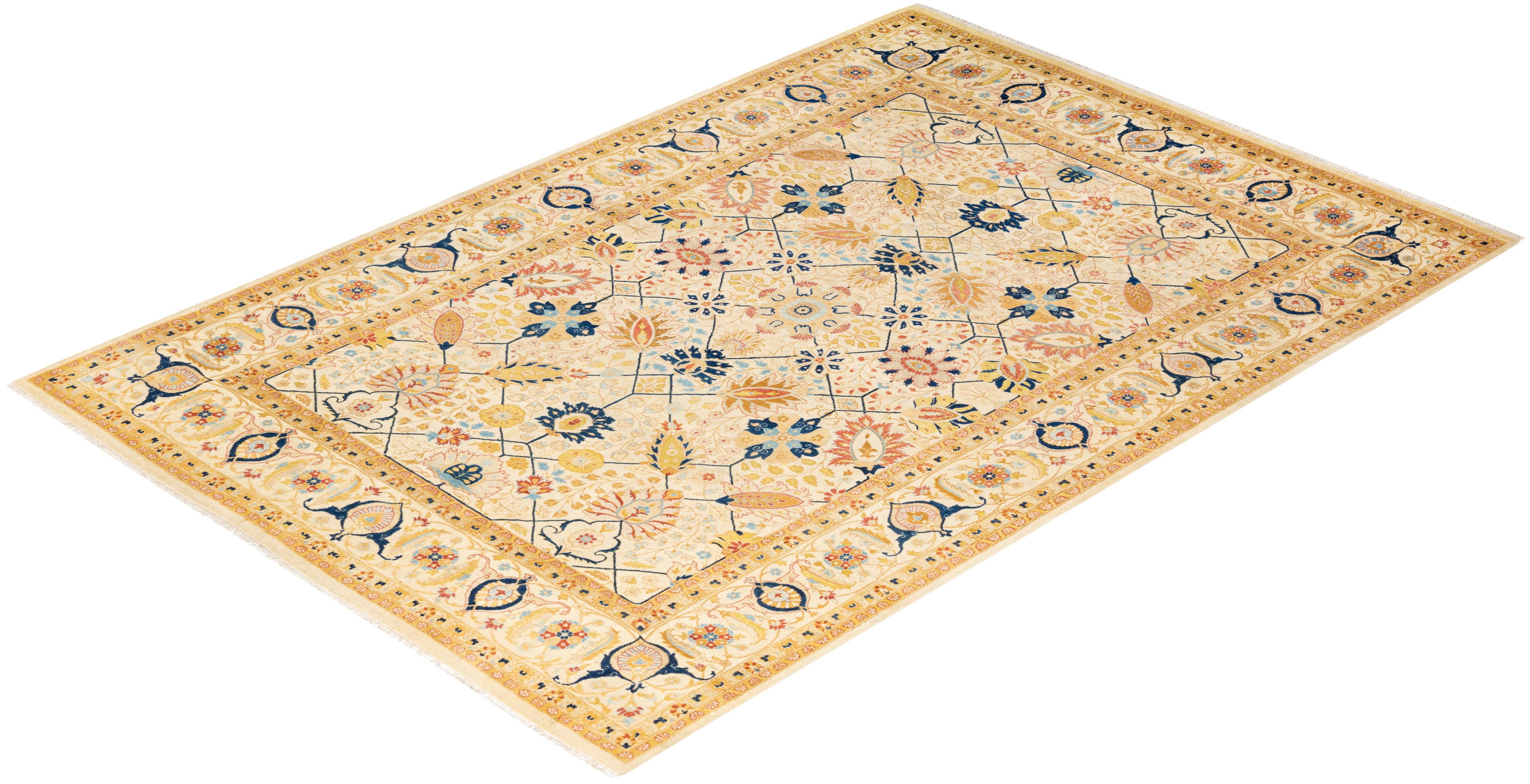 Traditional Hand Knotted Mogul Oriental Ivory Area Rug 6' 1" x 9' 0"