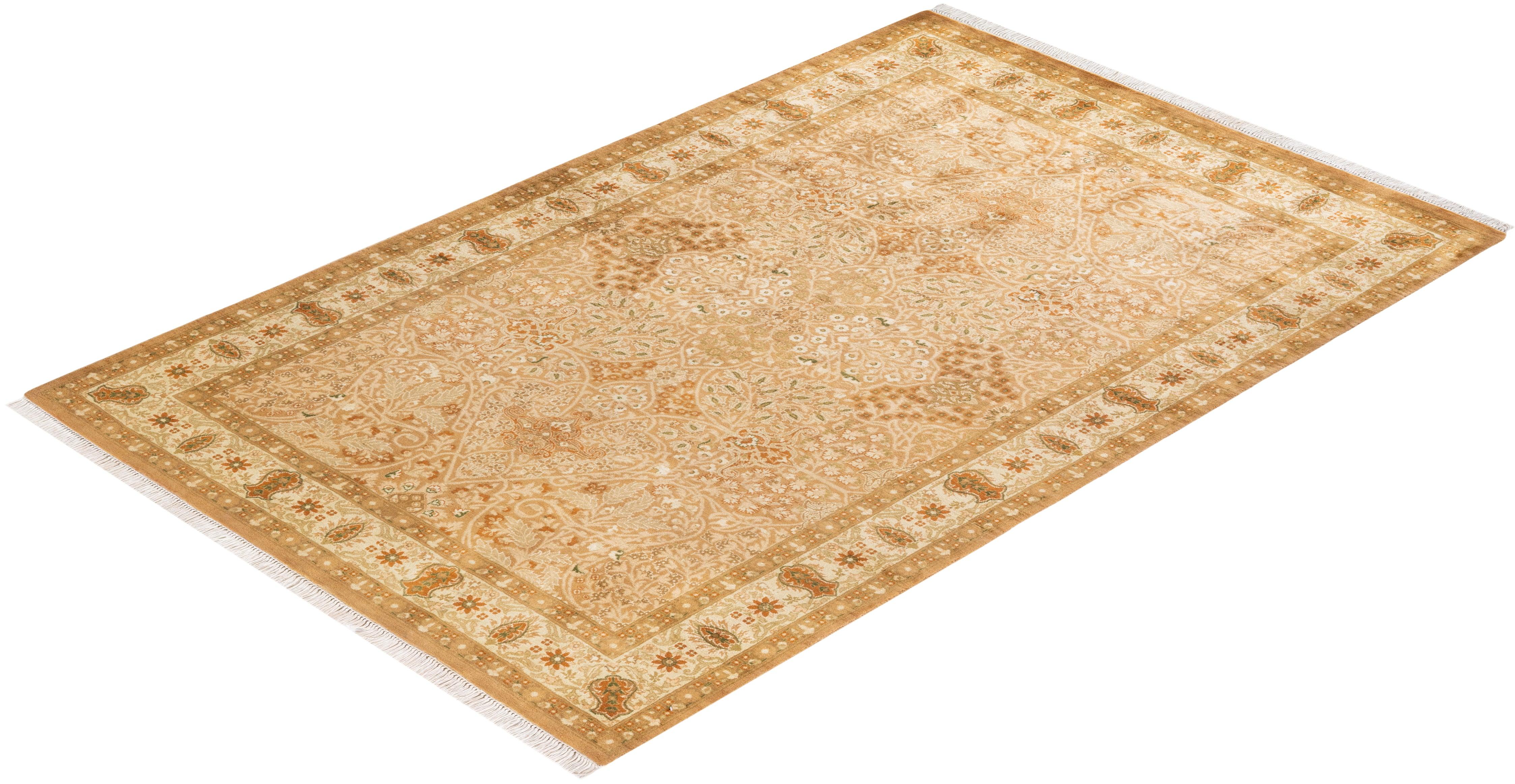 Traditional Hand Knotted Mogul Oriental Brown Area Rug 4' 7" x 7' 1"