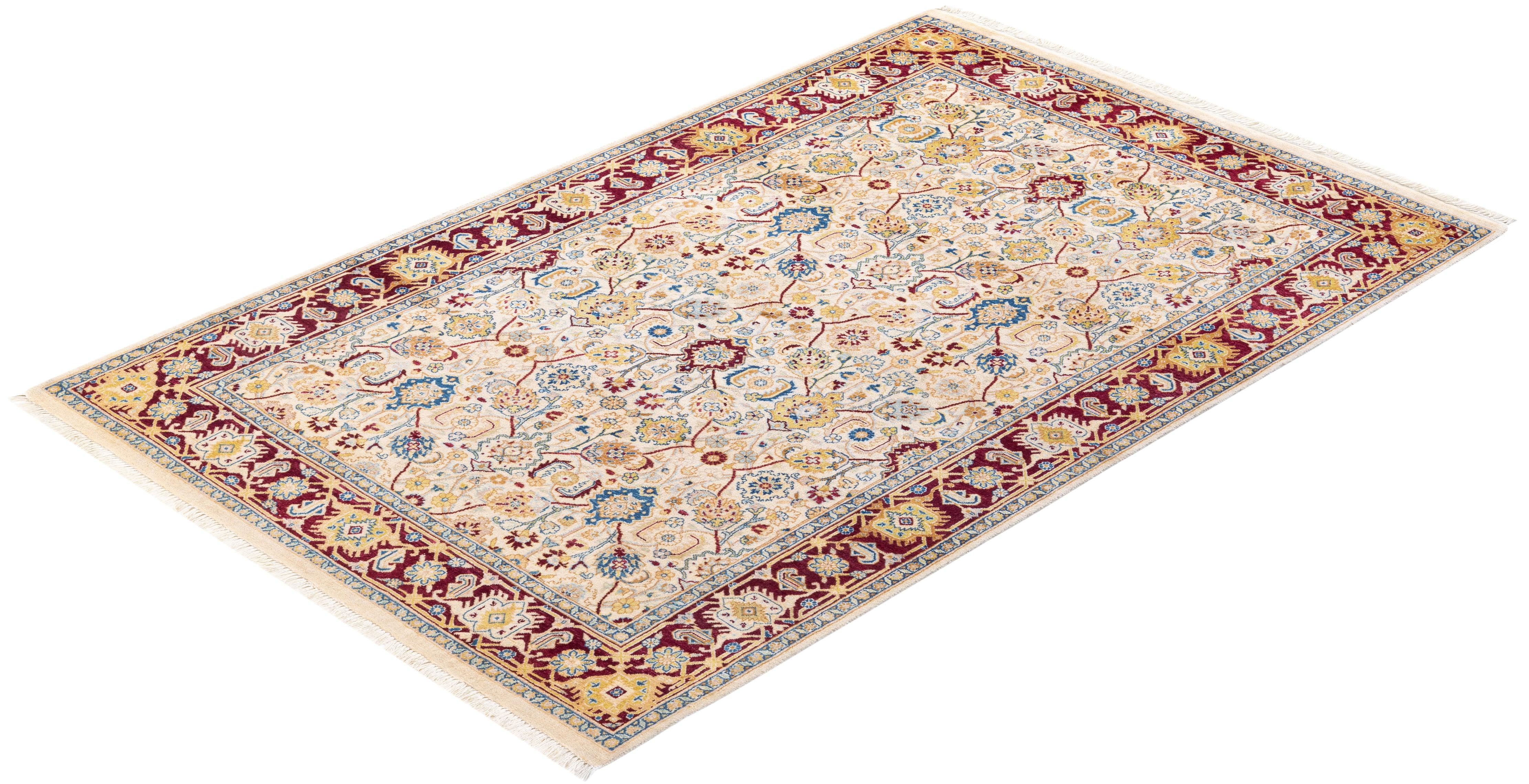 Traditional Hand Knotted Mogul Oriental Ivory Area Rug 4' 1" x 6' 3"