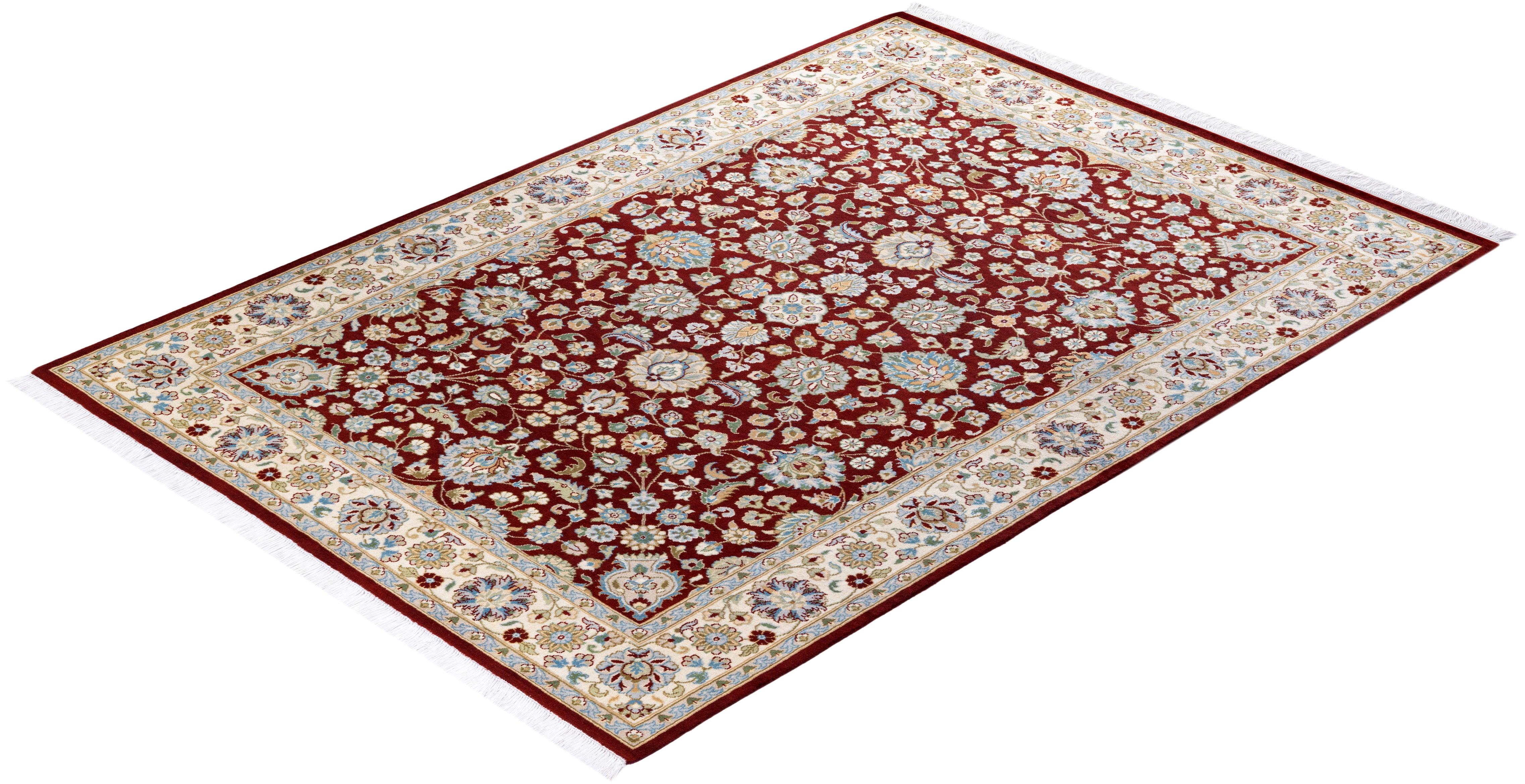 Traditional Hand Knotted Mogul Oriental Red Area Rug 4' 2" x 5' 10"