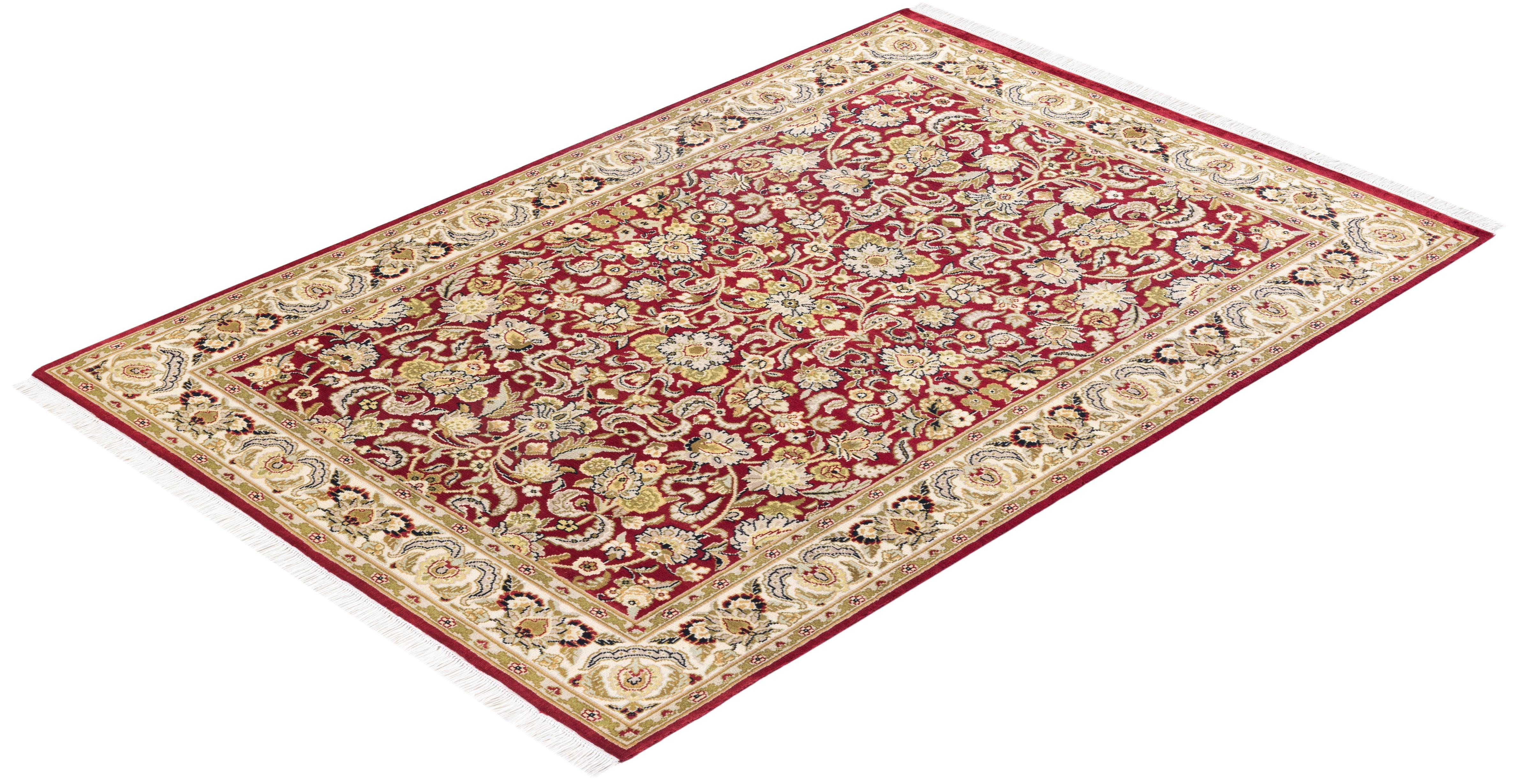 Traditional Hand Knotted Mogul Oriental Red Area Rug 4' 2" x 6' 1"