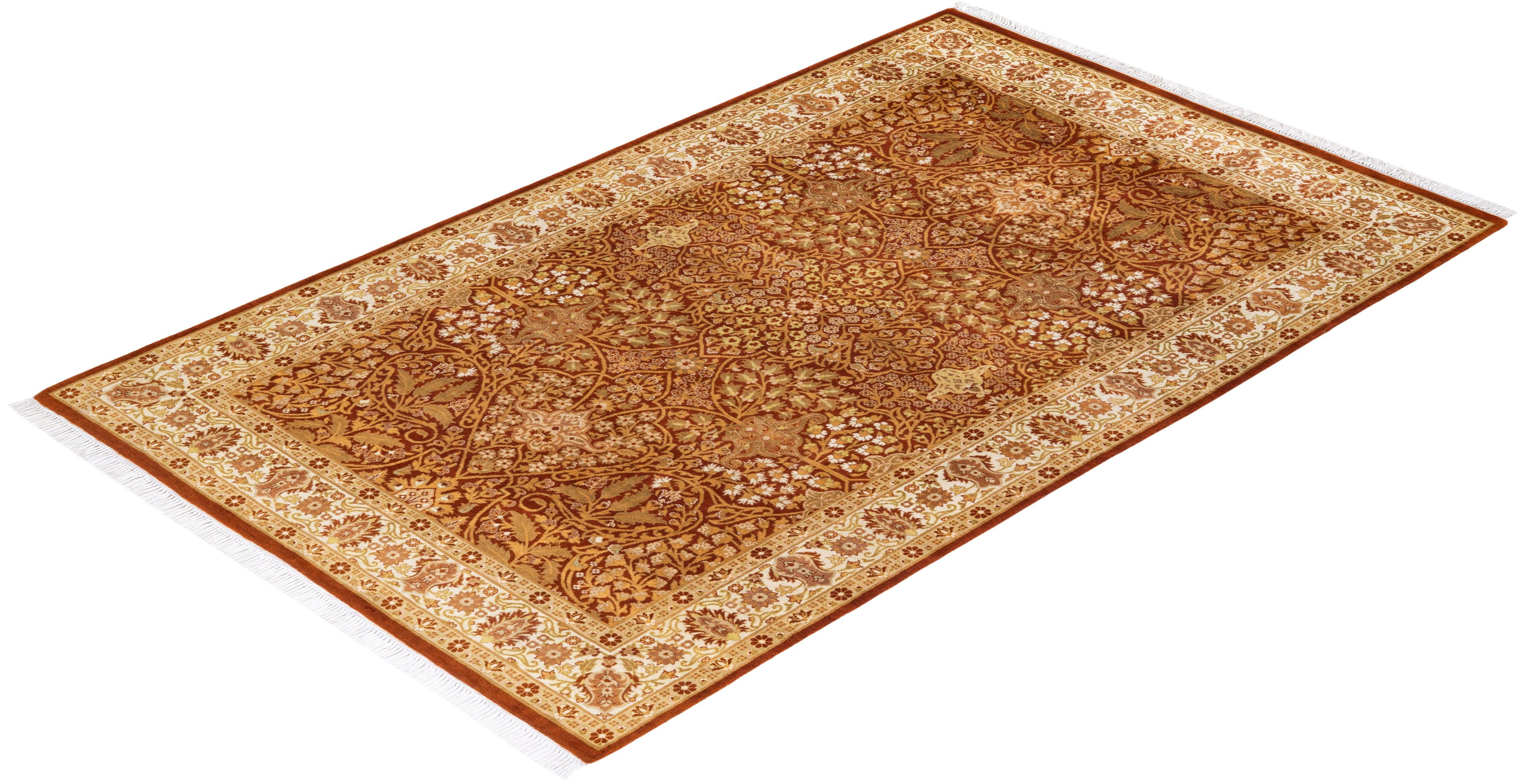 Traditional Hand Knotted Mogul Oriental Orange Area Rug 4' 7" x 7' 5"