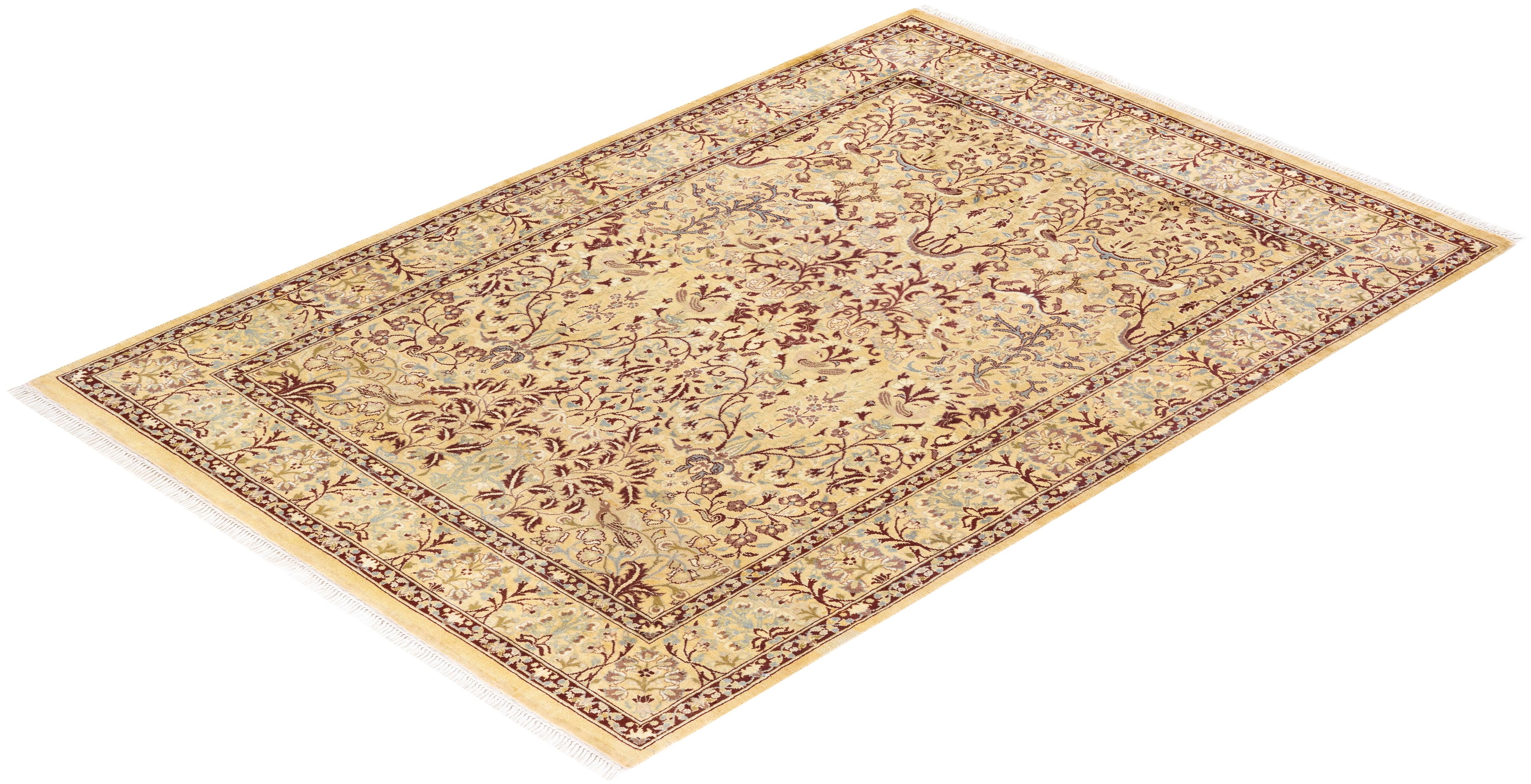 Traditional Hand Knotted Mogul Oriental Yellow Area Rug 4' 0" x 5' 10"