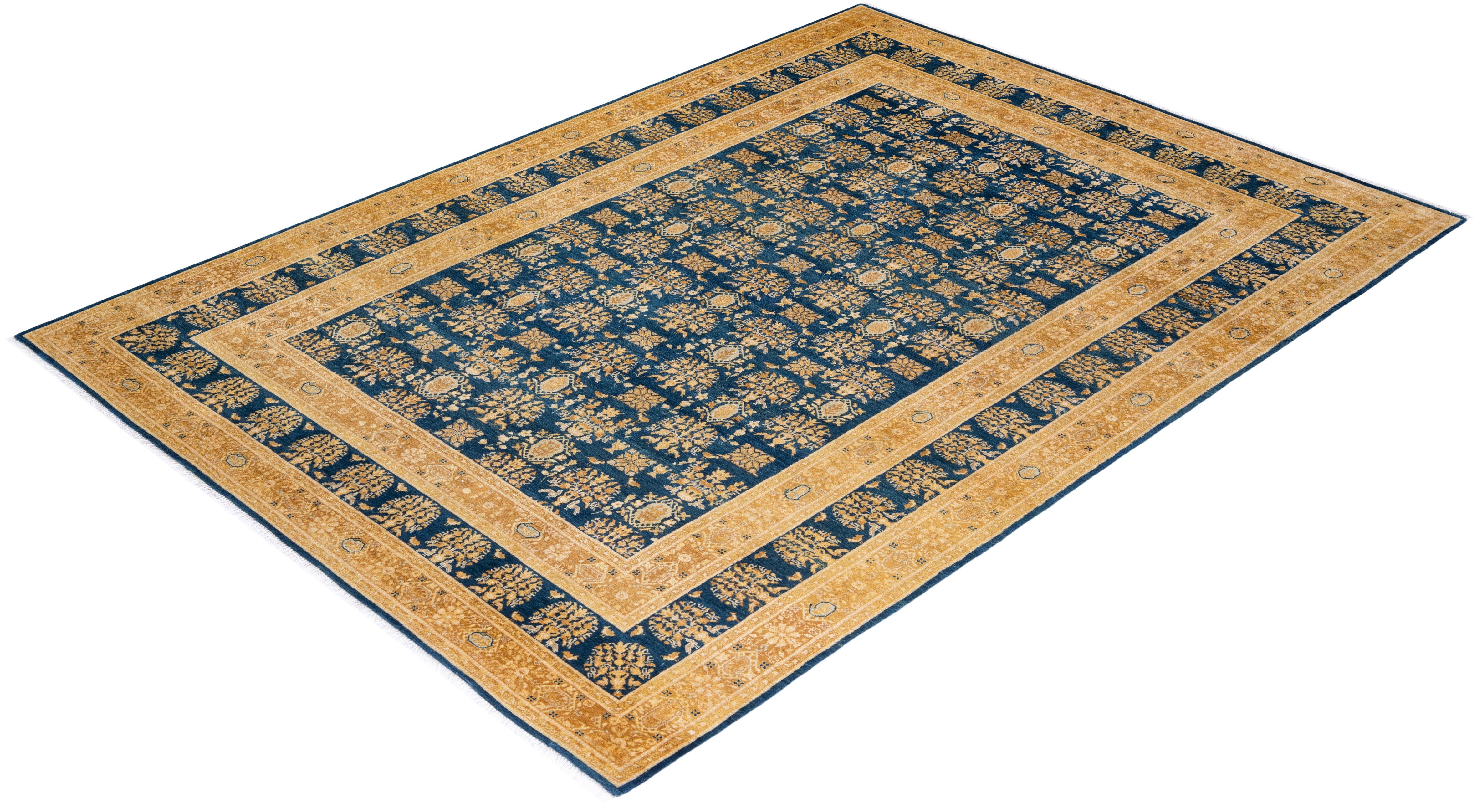 Traditional Hand Knotted Mogul Oriental Blue Area Rug 6' 2" x 8' 8"