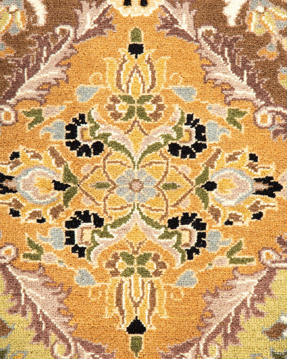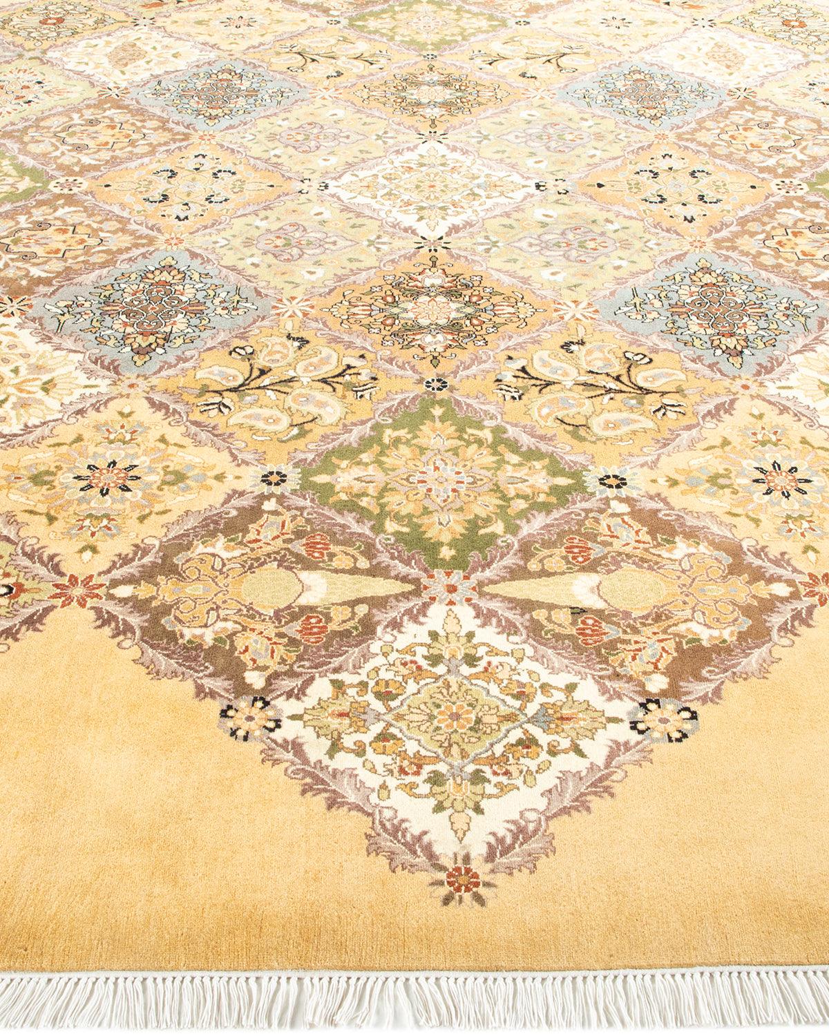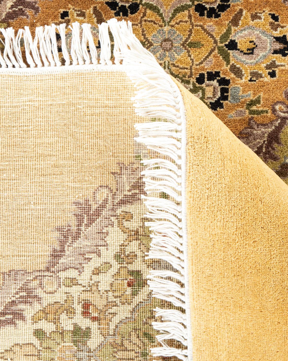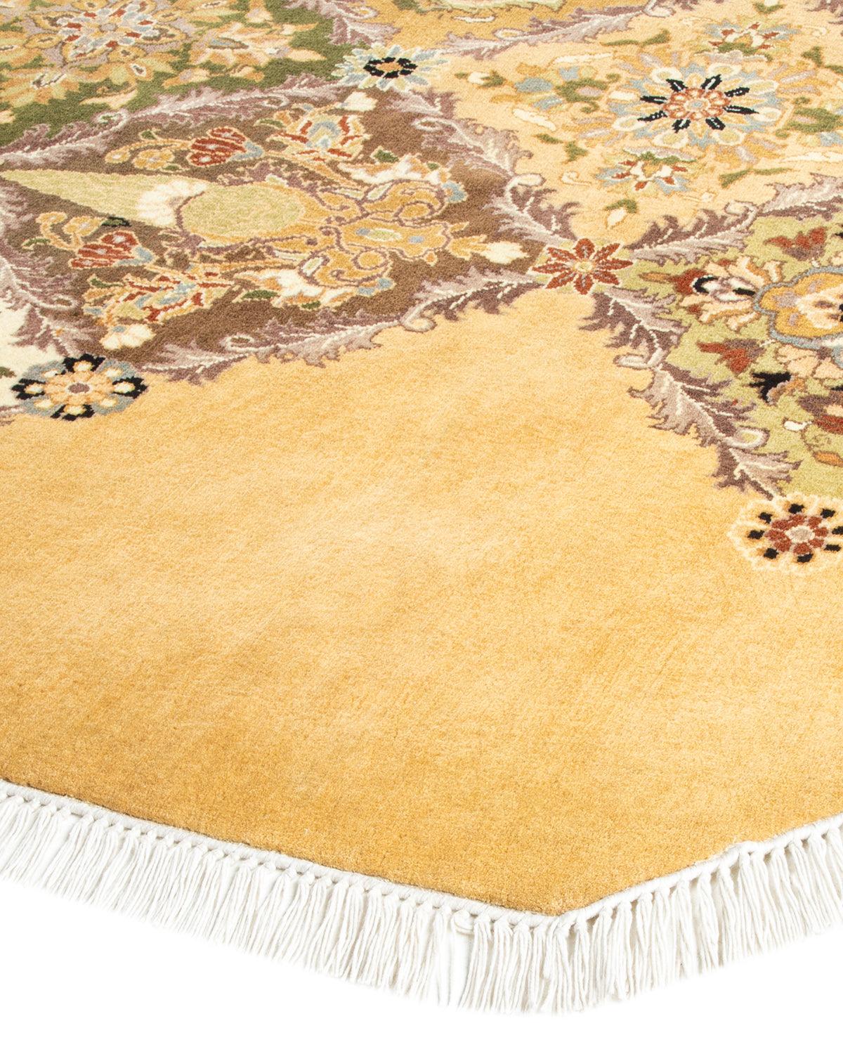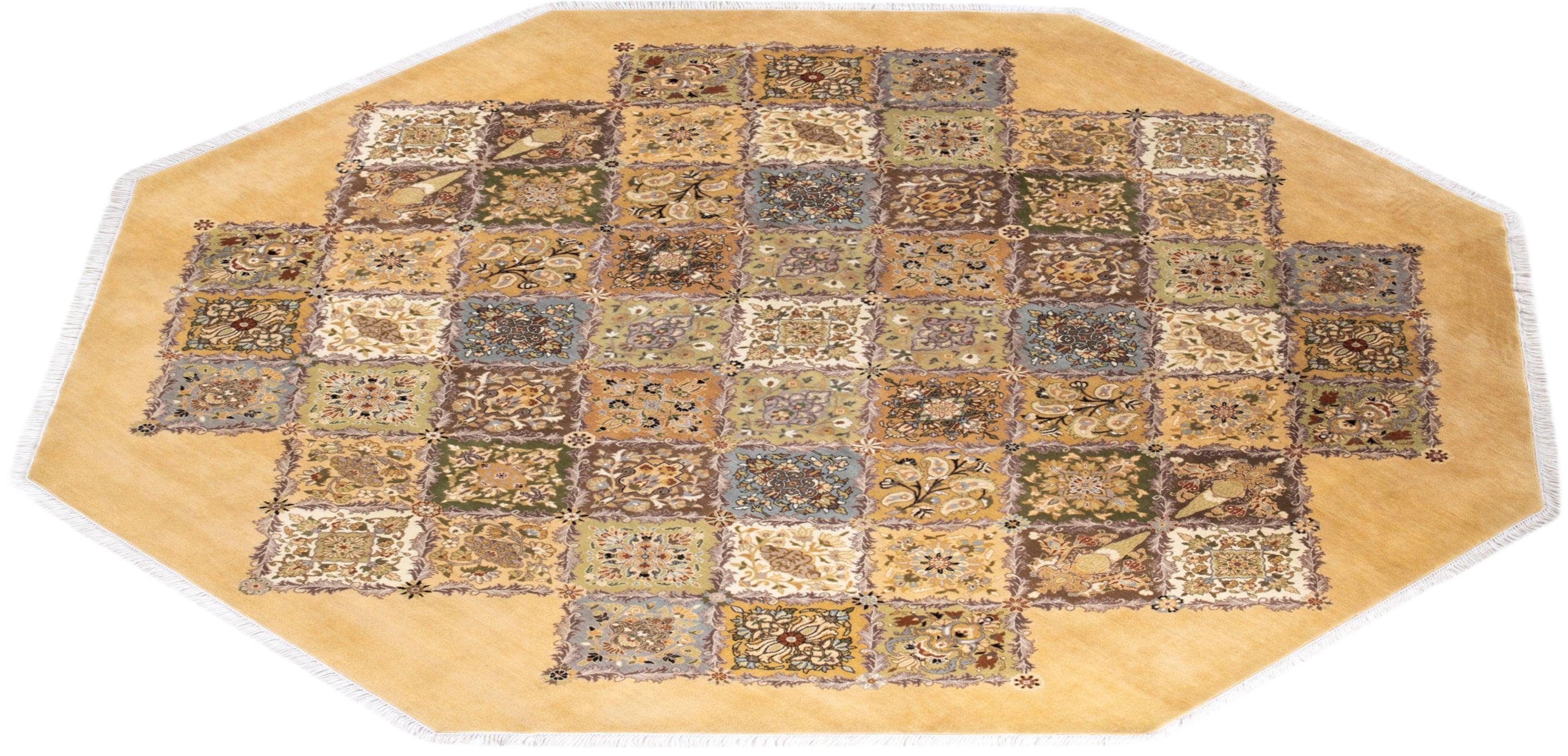 Traditional Hand Knotted Mogul Oriental Yellow Octagon Area rug 9' 1" x 9' 1"